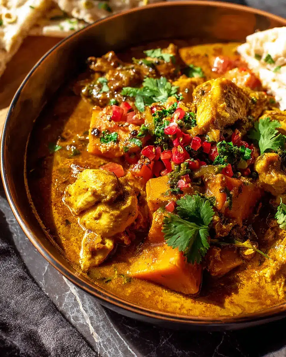 To serve, ladle your delicious curry over a bed of fluffy cooked rice or alongside warm naan. Top with some extra cilantro for a beautiful presentation. There you have it—a comforting bowl of 30 Minute Indian Chicken Sweet Potato Curry that is both inviting and bursting with flavor. Enjoy your cozy night in!