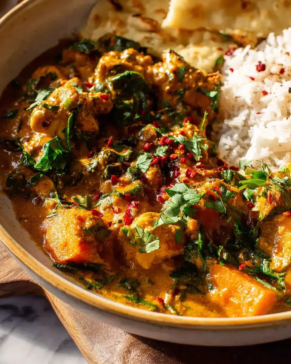 Why choose this recipe? For a start, it’s packed with flavor from fragrant spices, and the addition of spinach boosts its nutritional profile. Plus, cooking with ingredients like sweet potatoes not only adds natural sweetness but also provides a healthy dose of fiber and vitamins. If you’re looking for a recipe that brings warmth to your kitchen and is sure to please both friends and family, this curry is it!