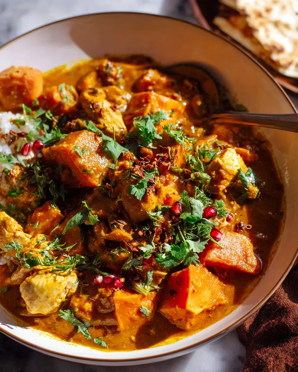 Imagine coming home after a long day, and within half an hour, you have a creamy, warmly spiced curry simmering away. It’s perfect for piling over rice or swiping with fresh naan. The combination of tender chicken, nutritious sweet potatoes, and creamy coconut milk creates a dish that’s not just a meal, but a comforting hug in a bowl.