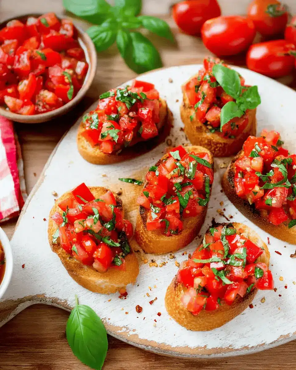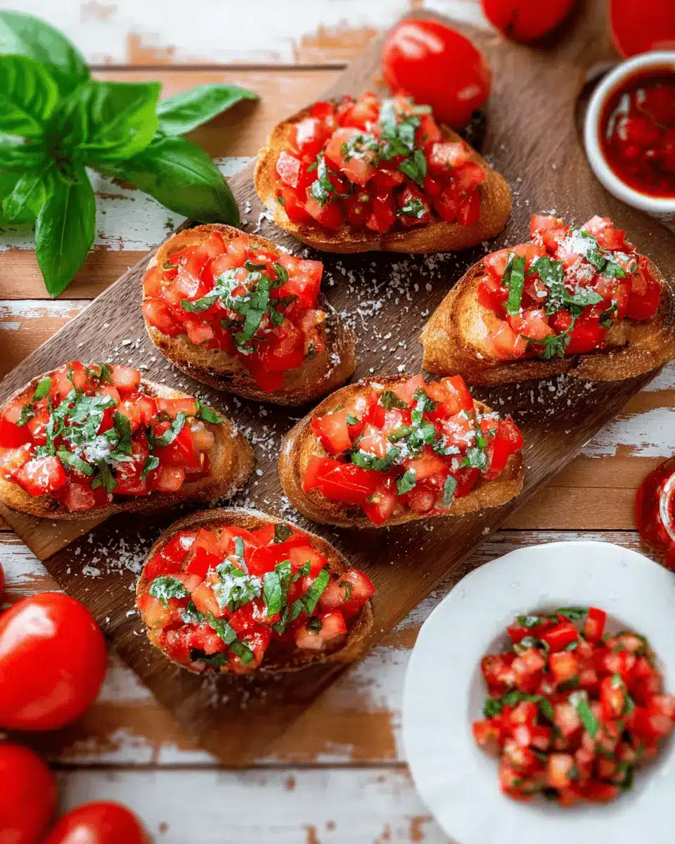 In conclusion, Authentic Bruschetta is more than just a starter; it’s a delightful experience that unites simplicity and flavor. With fresh ingredients and a straightforward process, you can recreate this classic dish at home. Enjoy it with friends and savor every bite! For more culinary inspiration, check out Serious Eats or New York Times Cooking.