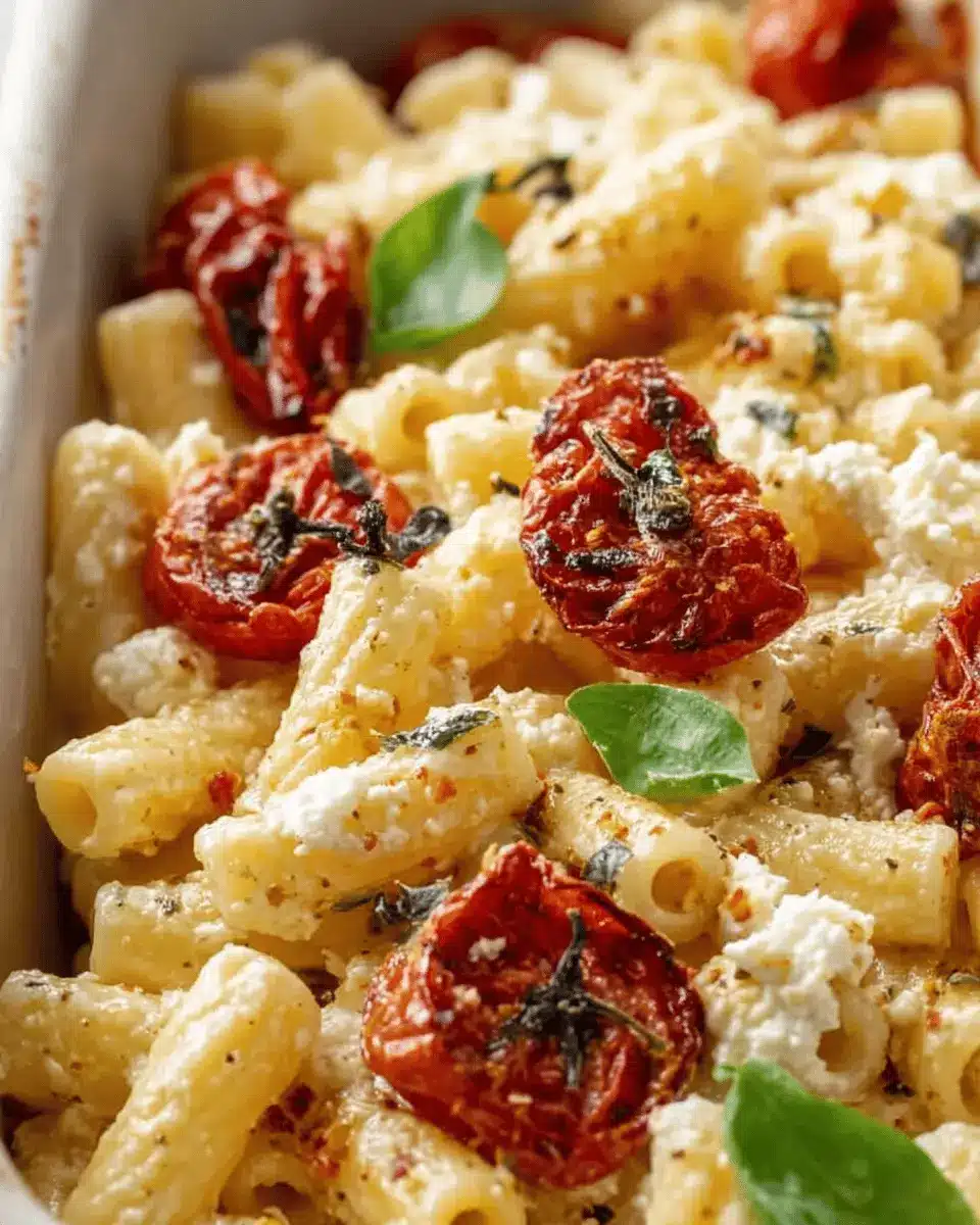 Why stop at feta? This dish is incredibly versatile, so feel free to swap in other cheeses! Goat cheese adds a tangy twist, while mozzarella brings a delightful creaminess. Try blending different cheeses for fun texture and flavor combinations. Cheese enthusiasts can check out Serious Eats for more ideas on how to experiment with different cheese types in your baked pasta dishes!