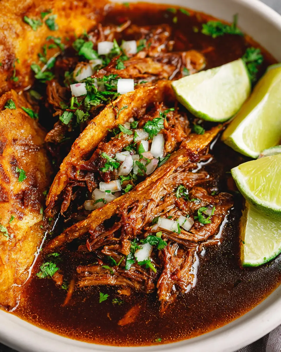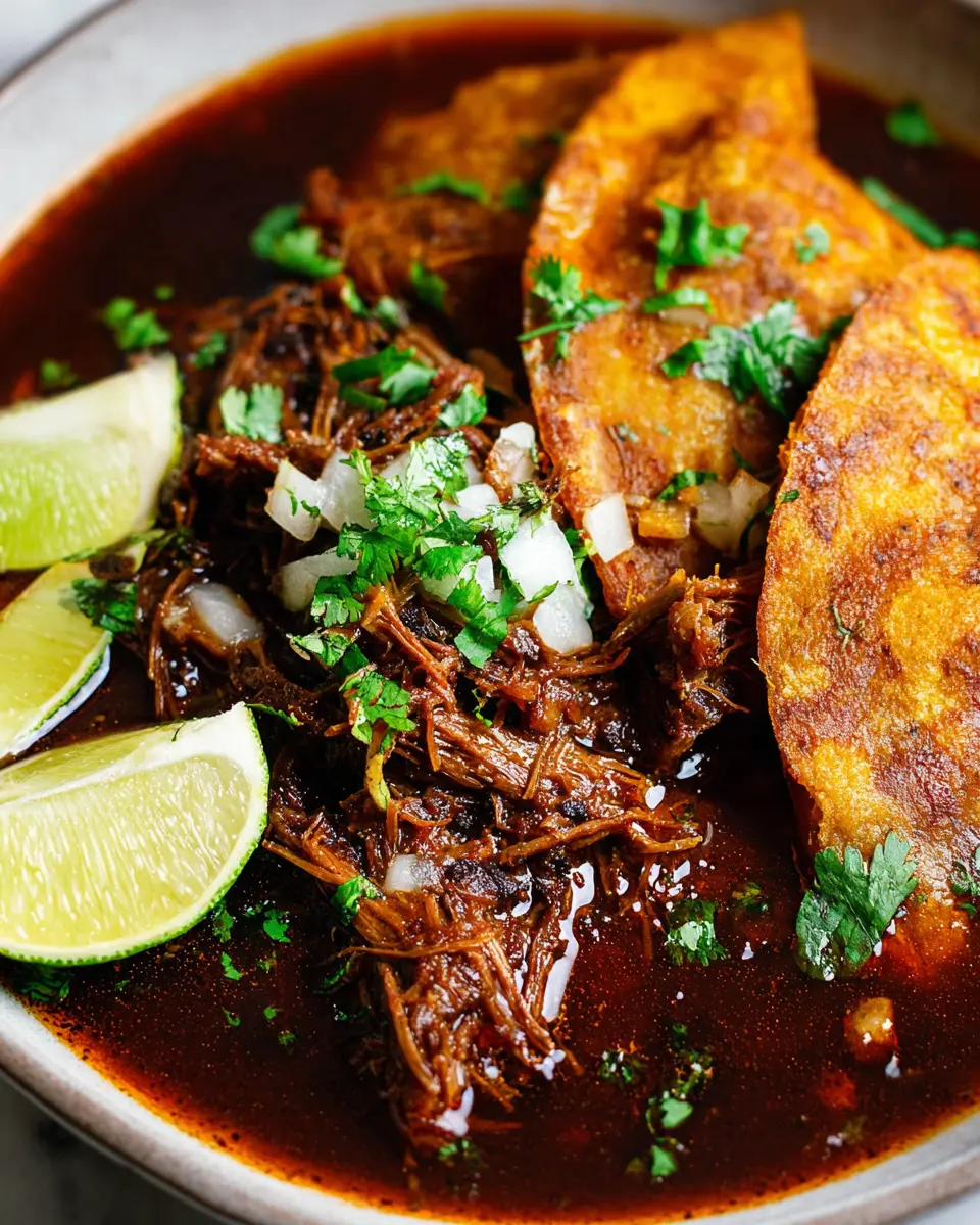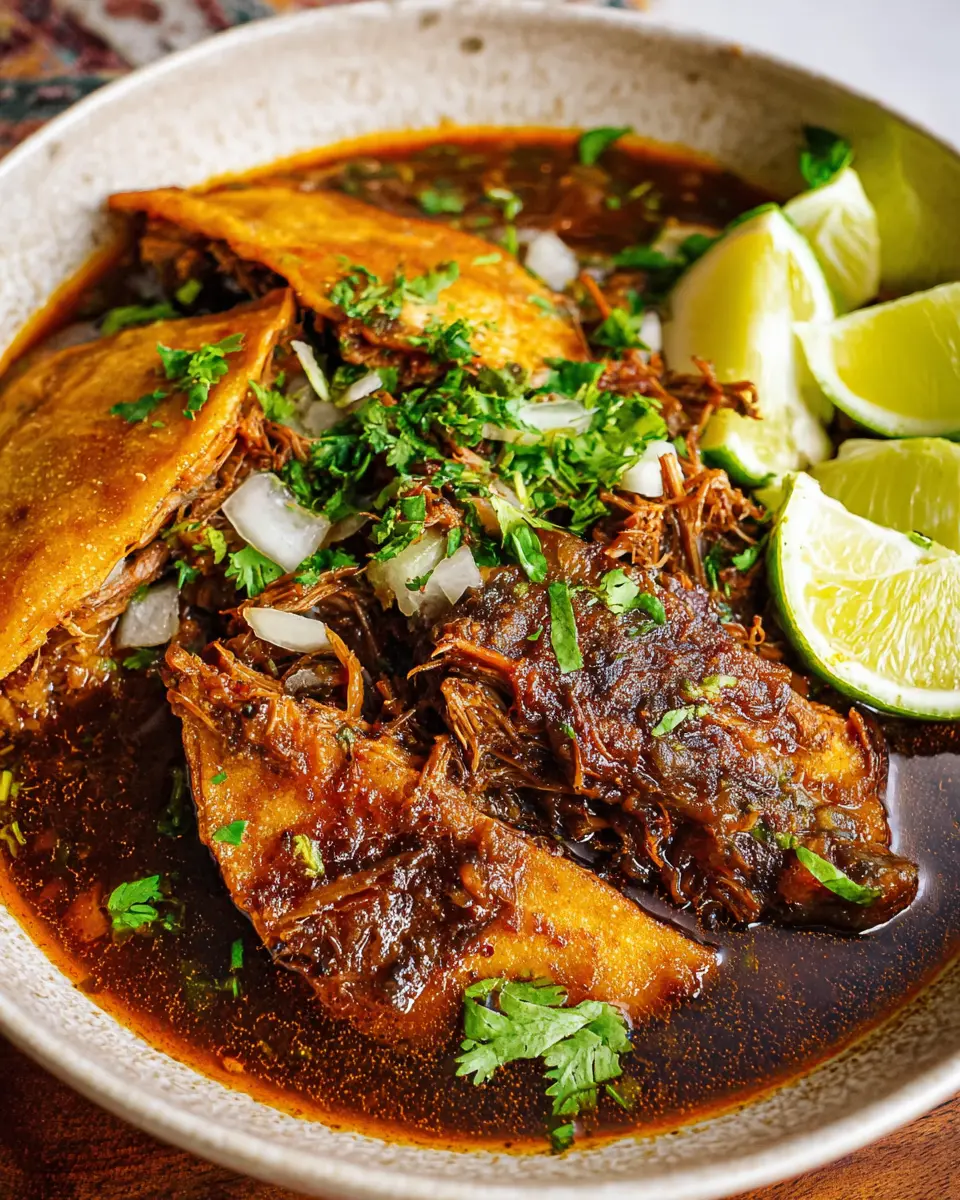 For deeply flavorful birria, focus on toasting the dried chilies before blending them into the sauce. This step enhances their richness and adds a smoky depth. Don't rush the cooking process; slow cooking allows the beef to absorb all the spices, resulting in a tender, mouthwatering dish. For an extra burst of flavor, consider adding a splash of lime juice or a few sprigs of fresh herbs like thyme or cilantro right before serving.