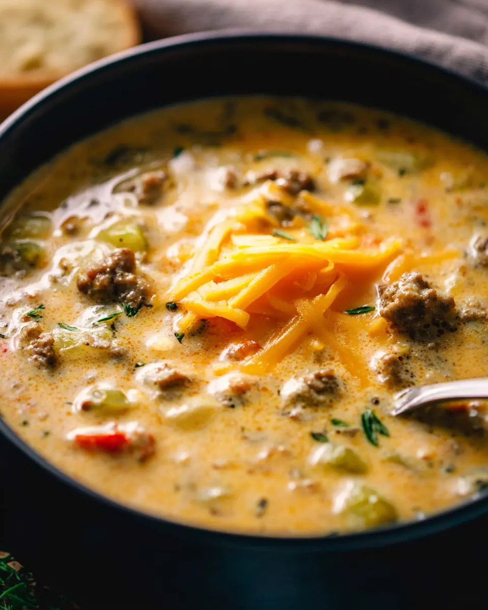 Storing your leftover cheeseburger soup is simple. Allow the soup to cool completely before transferring it to an airtight container. It can be kept in the refrigerator for up to 3 days or in the freezer for about 2-3 months. Just be sure to reheat it gently on the stove or in the microwave!