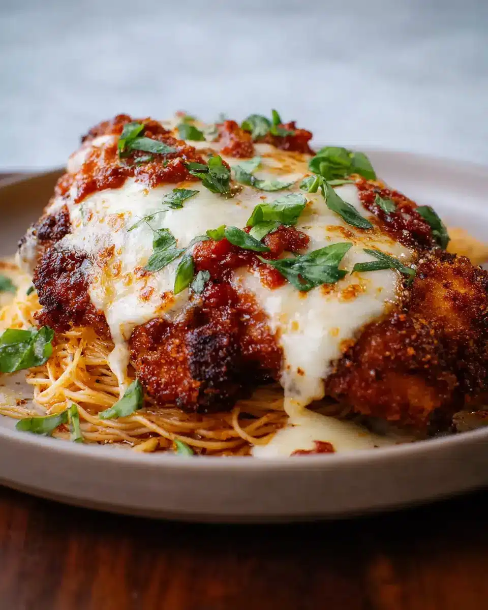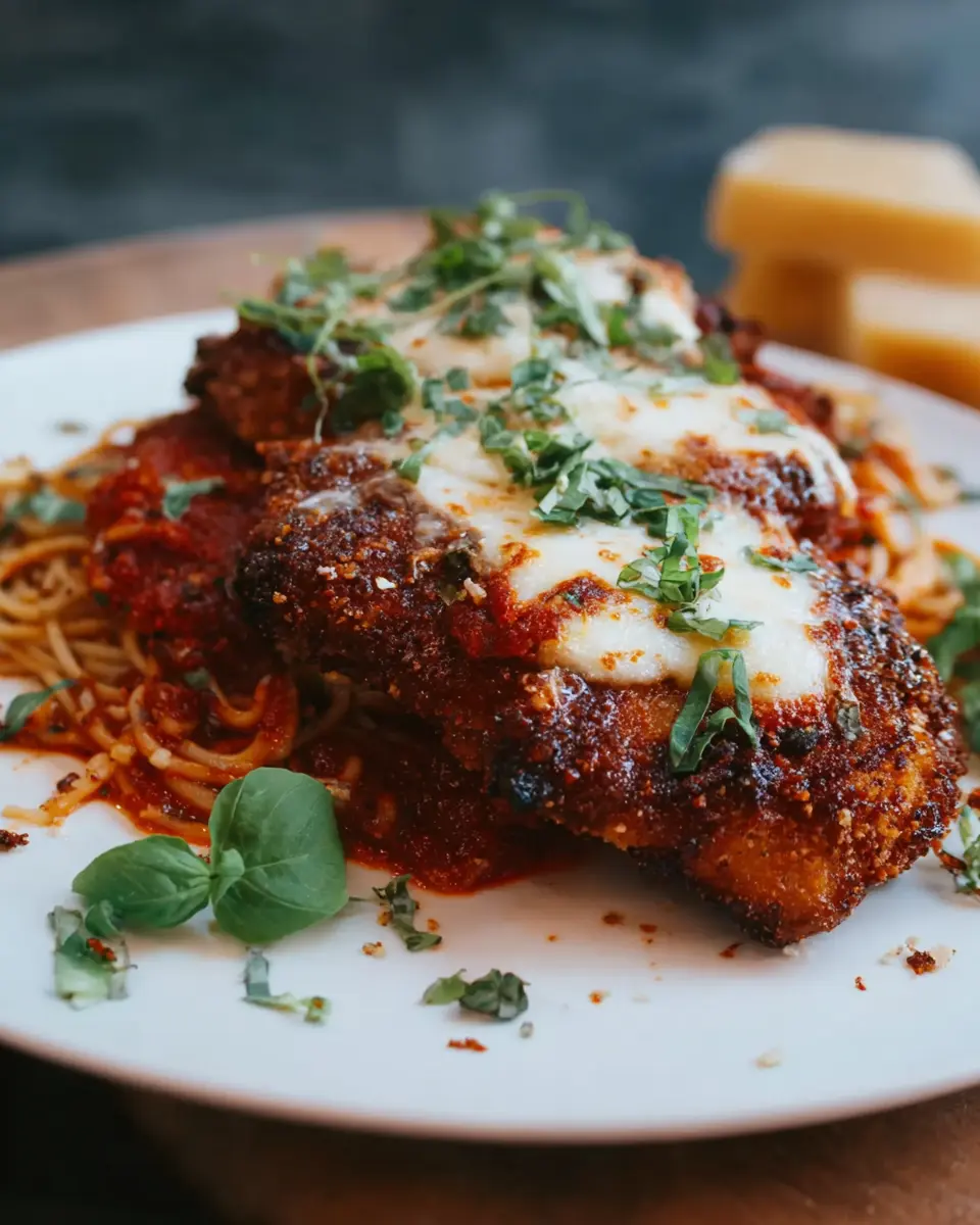 So, whether you’re looking to impress guests or simply satisfy your cravings, Chicken Parmesan is here to deliver. Ready to whip up your own delicious version? Let’s dive into the recipe that promises a crispier crust and less sauce than the traditional take!