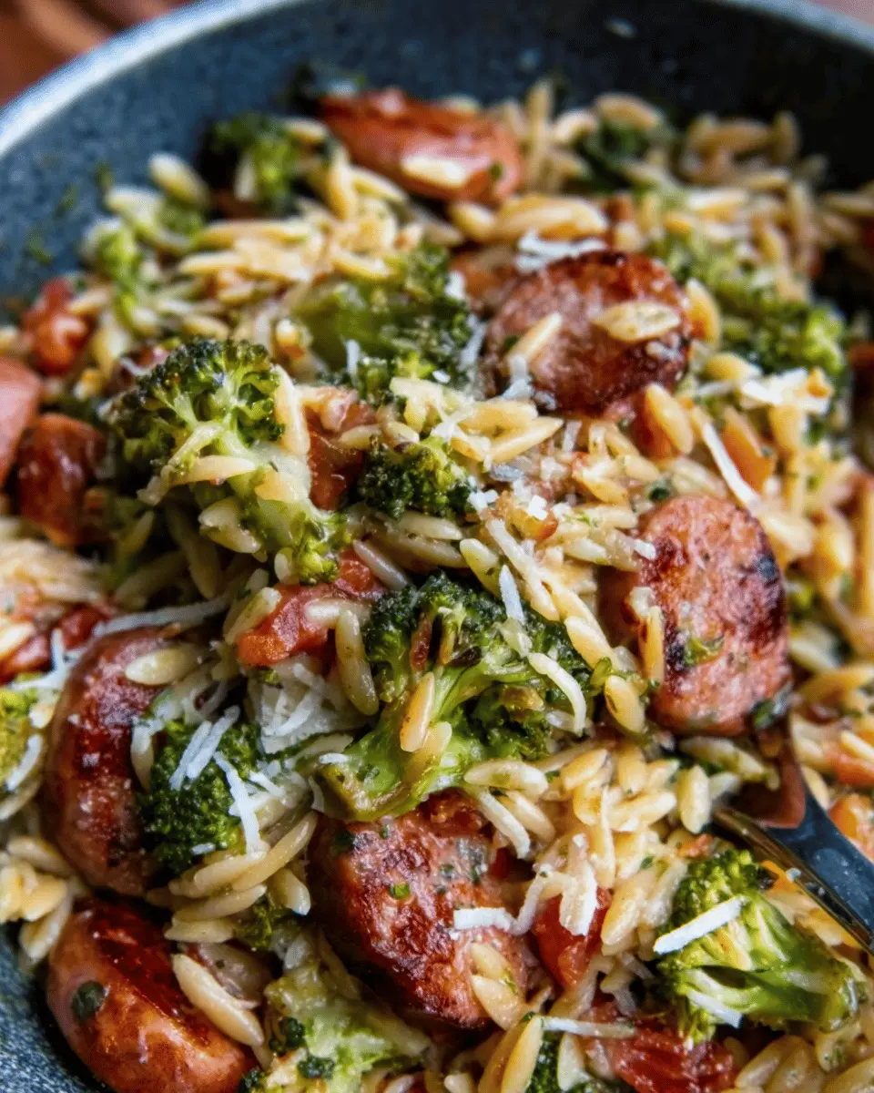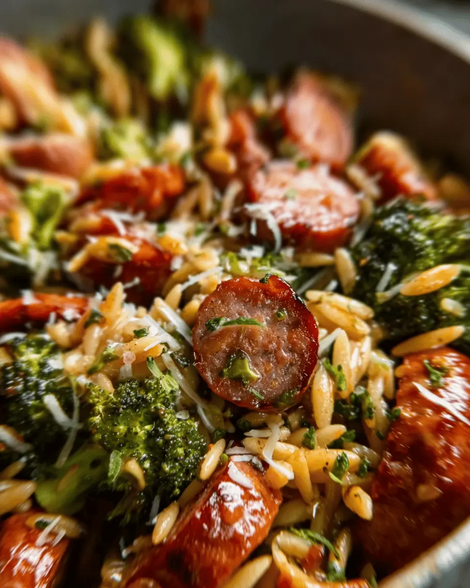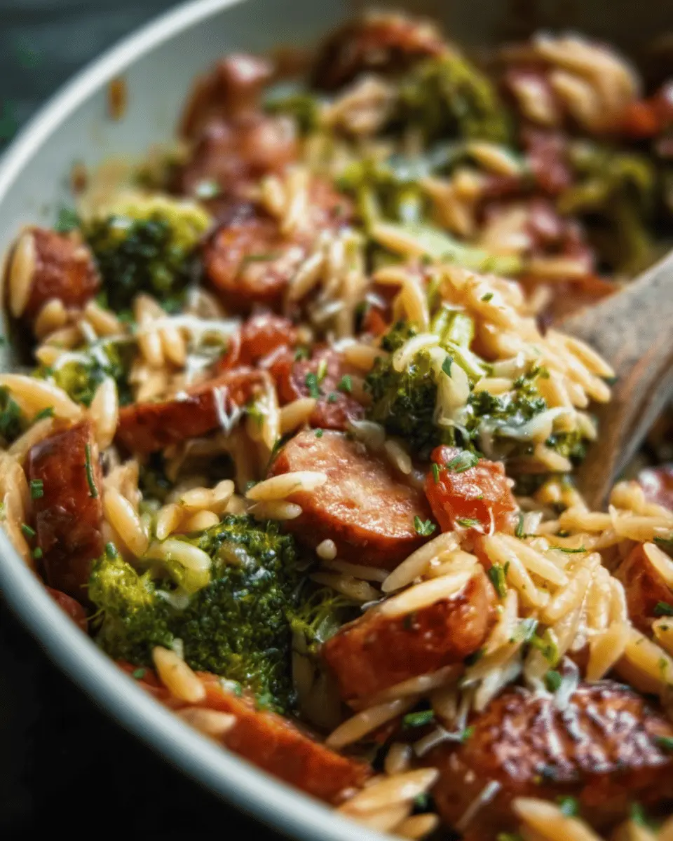 If you don’t have orzo on hand, there are several great substitutes. You can use small pasta shapes like farfalline, ditalini, or even quinoa for a gluten-free option. Each will bring a slightly different texture but will still work beautifully with the chicken sausage and broccoli.