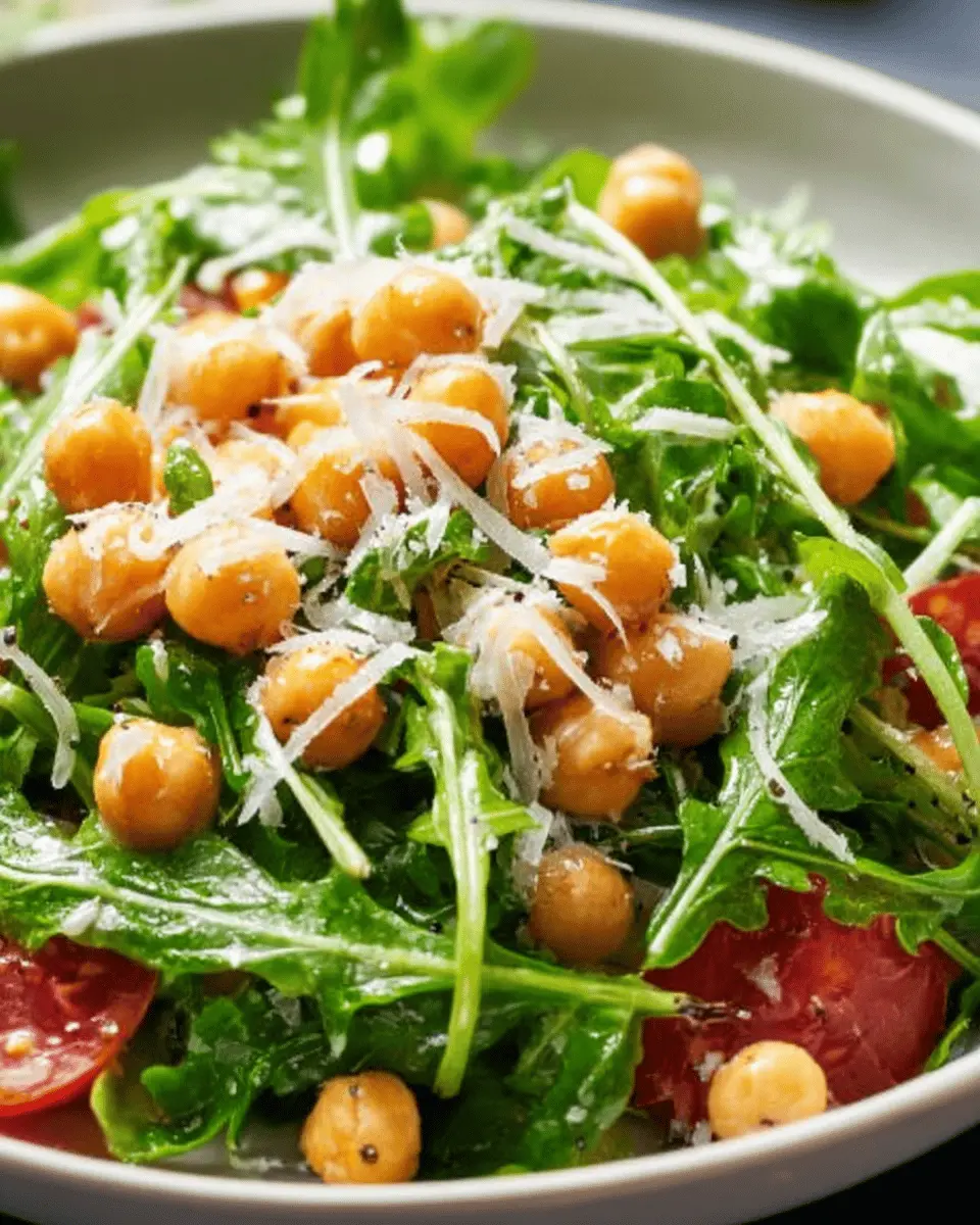 Why choose chickpeas? These little legumes are packed with protein and fiber, making them an excellent choice for boosting energy and keeping you full throughout the day. When paired with peppery arugula and aged Parmigiano Reggiano, each bite is a delightful mix of textures and flavors. Plus, the zesty lemon vinaigrette adds that refreshing zing we all crave.