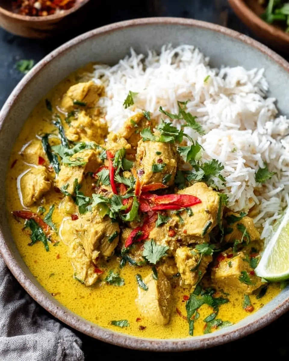 Coconut Curry Chicken shines when served over a generous portion of fluffy rice. The rice absorbs the rich, creamy curry, ensuring every bite is bursting with flavor. For a twist, consider pairing your curry with quinoa or cauliflower rice for a lighter option. Adding some toasted coconut flakes or chopped peanuts on top can introduce a delightful crunch that perfectly complements the dish.