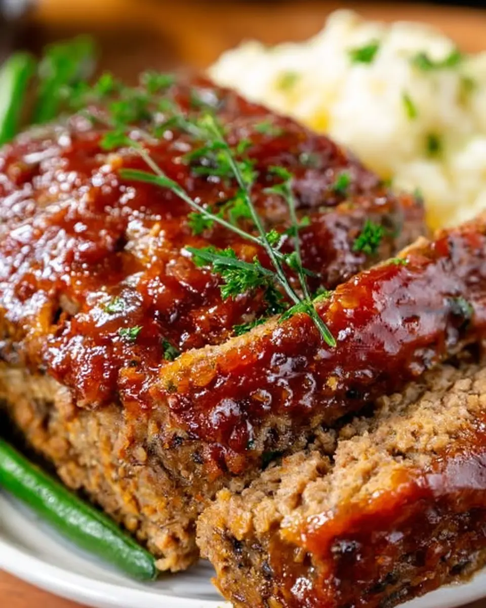After the first 30 minutes, carefully remove the meatloaf and brush the topping all over. Return it to the oven and bake for an additional 30-40 minutes or until it reaches an internal temperature of 155°F (it’ll continue to rise as it rests). Once done, allow it to sit for 15 minutes before slicing. This resting period ensures that the juices redistribute, keeping your meatloaf moist and flavorful.