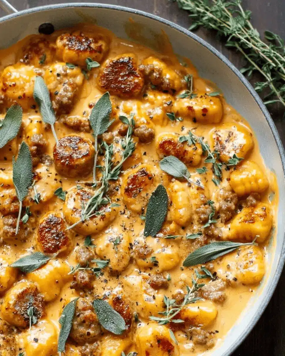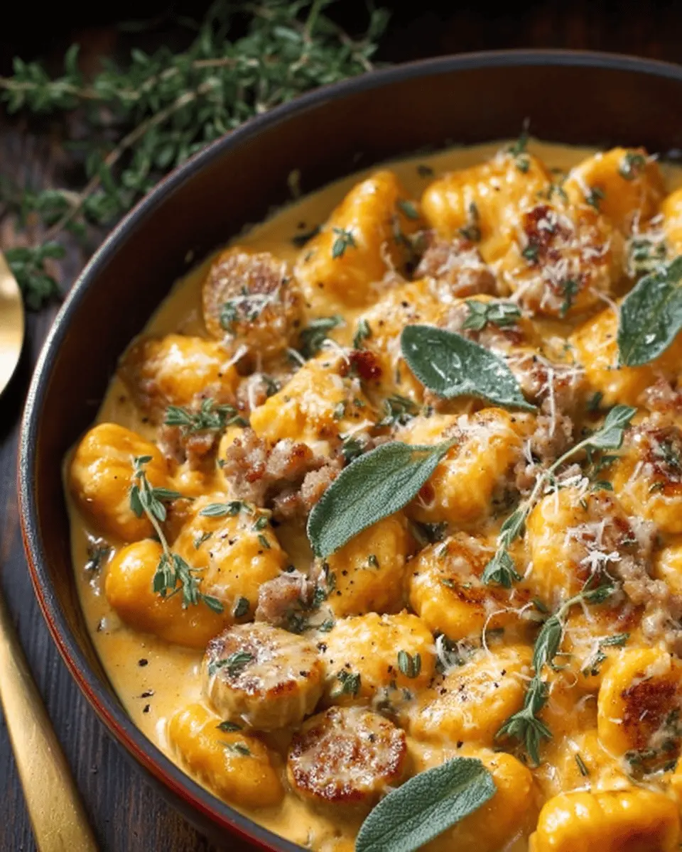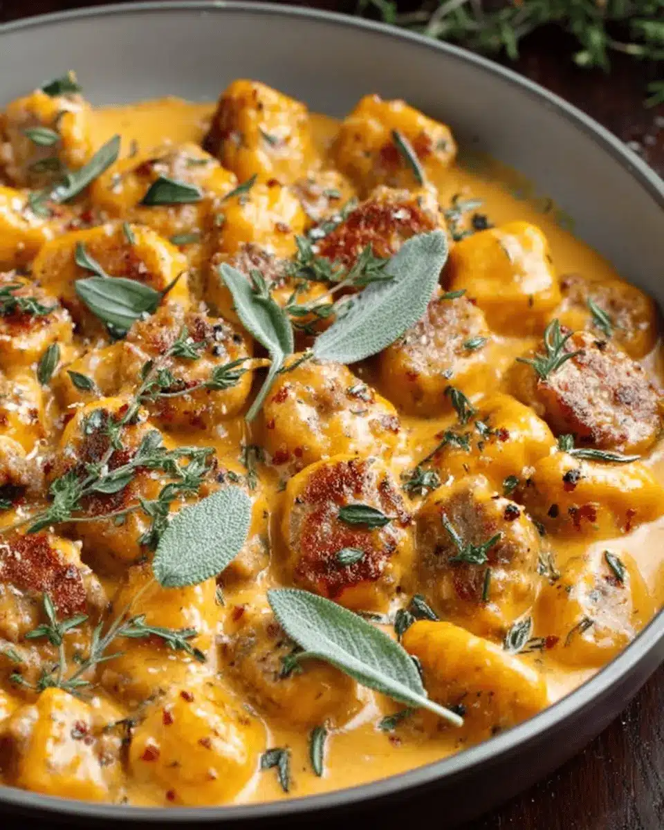 Creamy Butternut Squash Gnocchi with Sausage, Thyme, and Sage