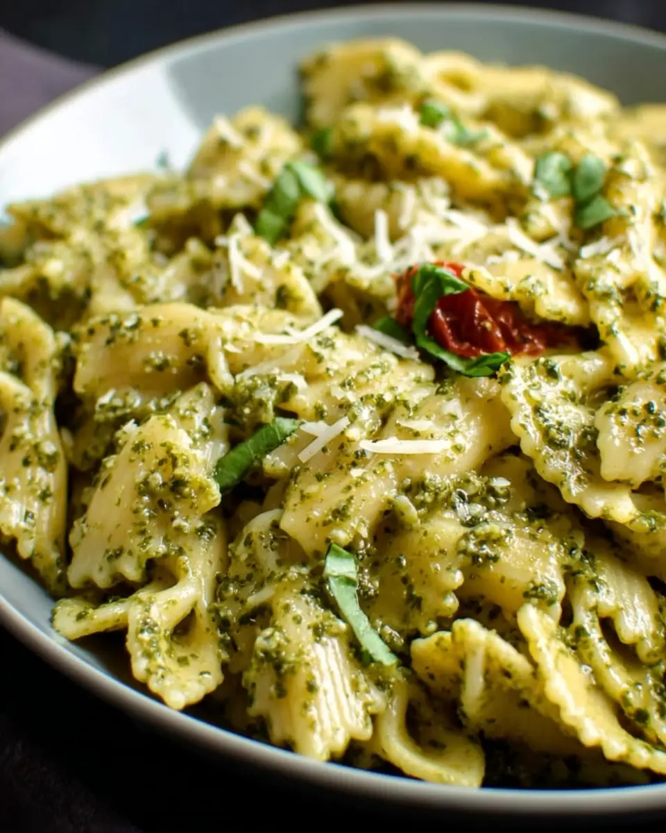 Make your dish a visual feast! Here are some simple tips to present your creamy pesto pasta like a pro:
