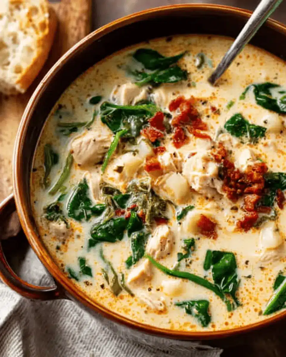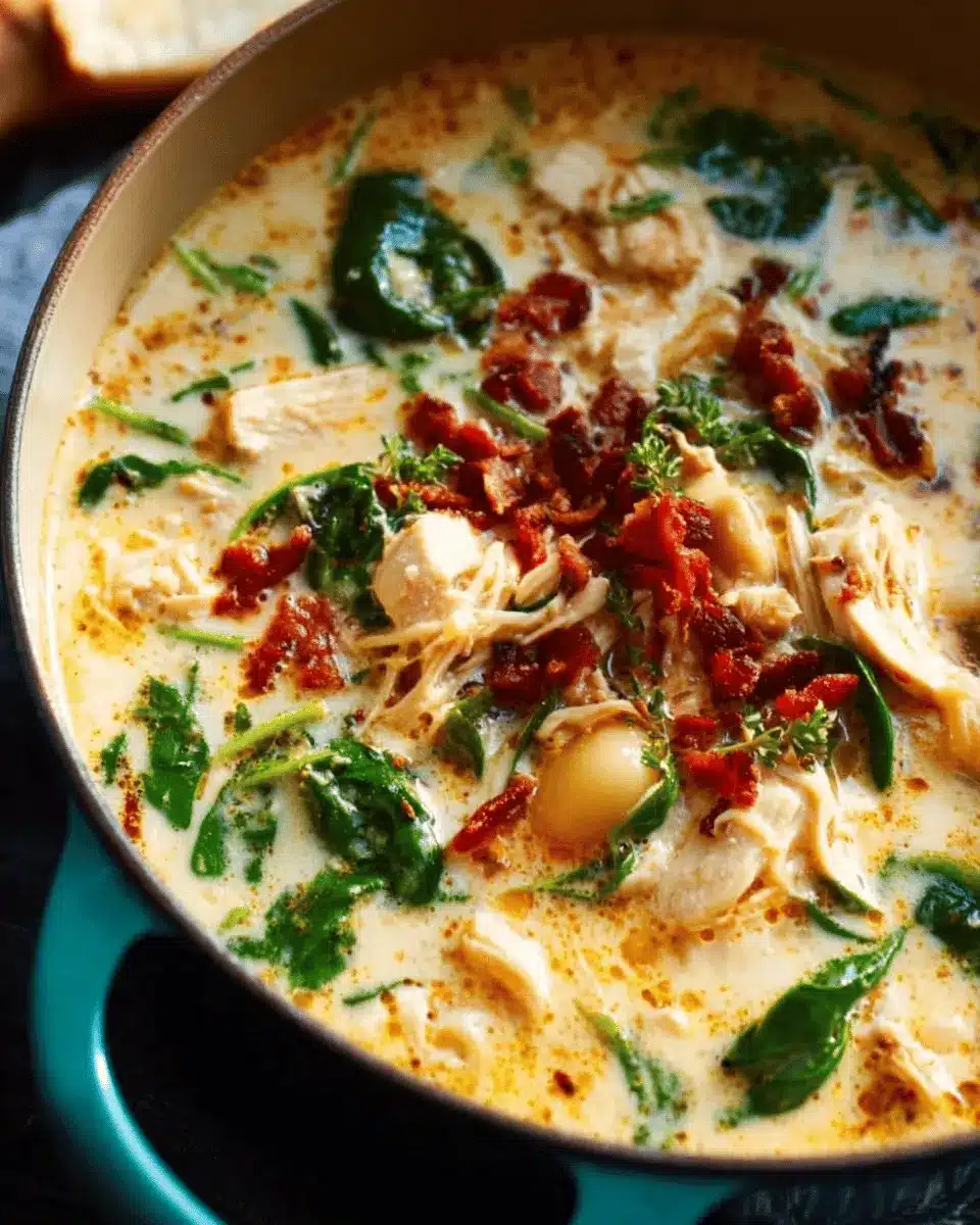 The magic of this soup lies in its rich, velvety texture and the burst of flavors from sun-dried tomatoes and parmesan. Imagine savoring a spoonful filled with juicy chicken, fresh spinach, and tender pasta—it’s a symphony for your taste buds!