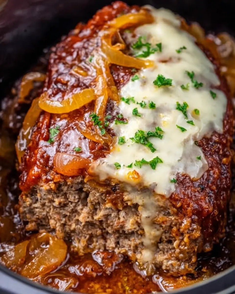 Imagine coming home after a long day to the comforting aroma of savory onions and melted Swiss cheese wafting from your kitchen. Not only does this dish elevate the traditional meatloaf with rich, bold flavors, but it also fits seamlessly into a busy lifestyle. The use of a slow cooker means you can set it and forget it. Plus, soaking up all that French onion soup goodness makes each bite tender and moist.