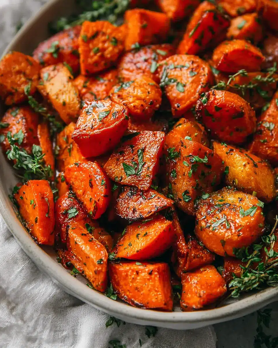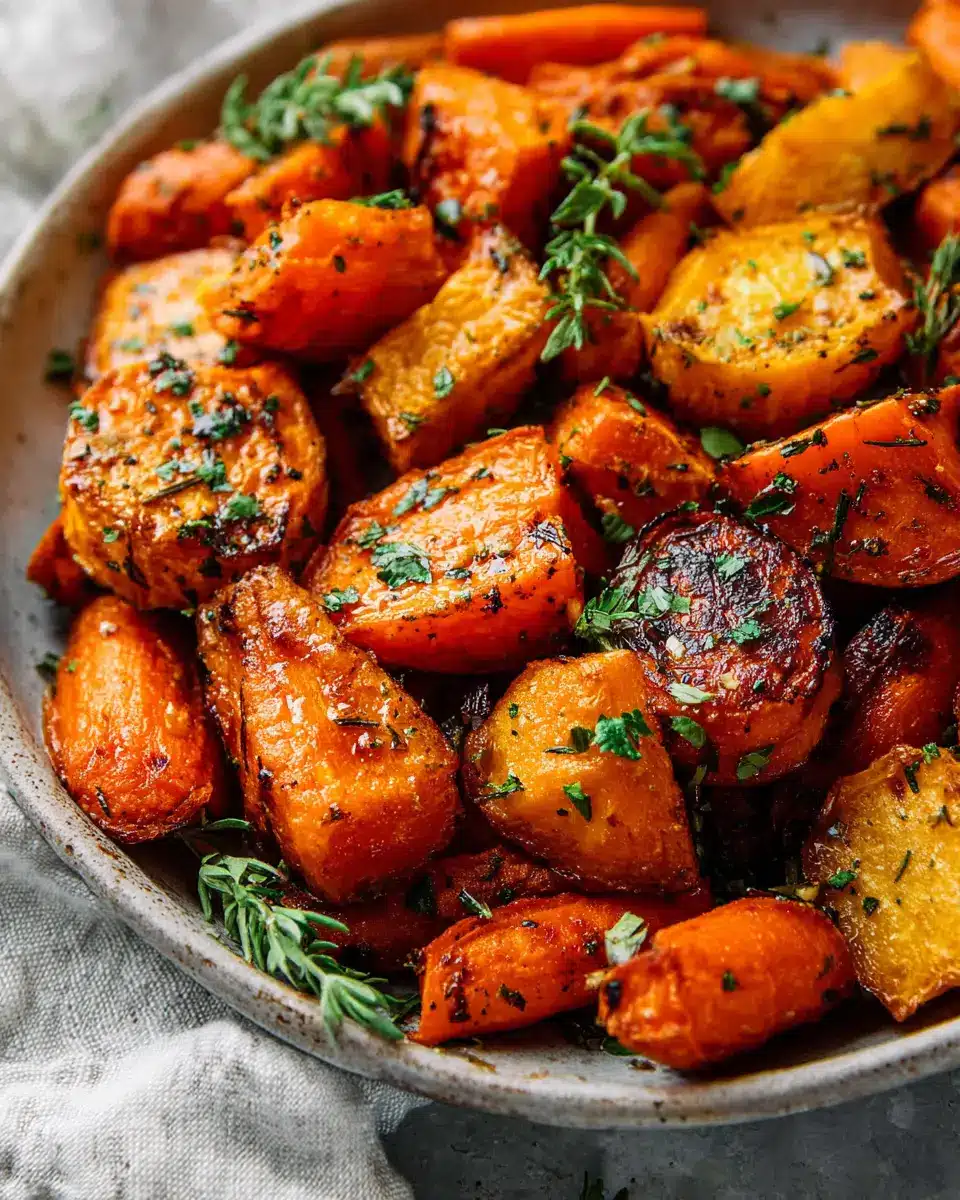 Absolutely! While this recipe features sweet potatoes and carrots, you can easily swap in other root vegetables like butternut squash, parsnips, or even beets. Fresh herbs like rosemary and thyme can be exchanged for your favorites, such as oregano or basil. If you don’t have maple syrup on hand, agave nectar or coconut sugar work well too!