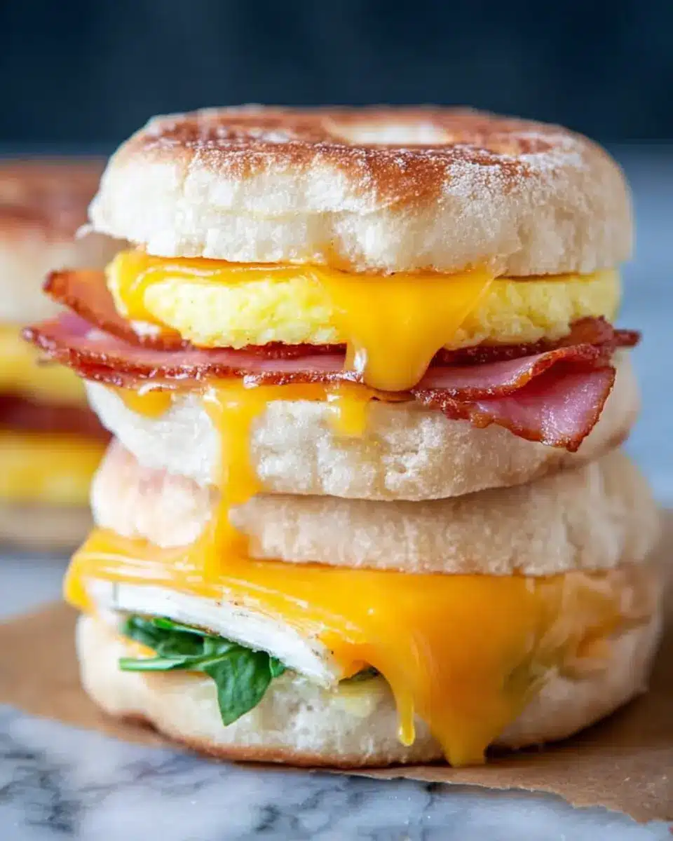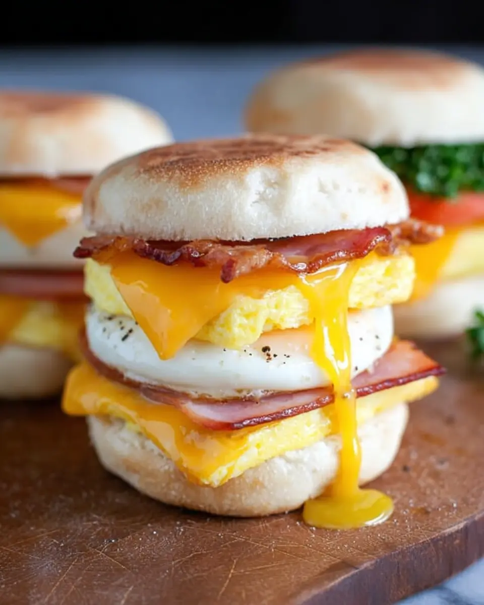 These sandwiches not only save time but are also incredibly versatile. You can customize them to fit your taste and dietary needs, using ingredients like Turkey Bacon, Chicken Ham, or even vegetables. Plus, they are packed with protein from the eggs and cheese, providing a nutritious start to your day.