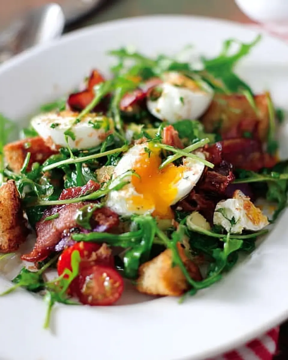 In conclusion, a French bistro salad beautifully combines savory turkey bacon, fresh greens, and a perfectly poached egg, making it a delightful choice for lunch or dinner. Its simplicity and rich flavors encapsulate the essence of French cuisine. Treat yourself and enjoy this classic dish today!
