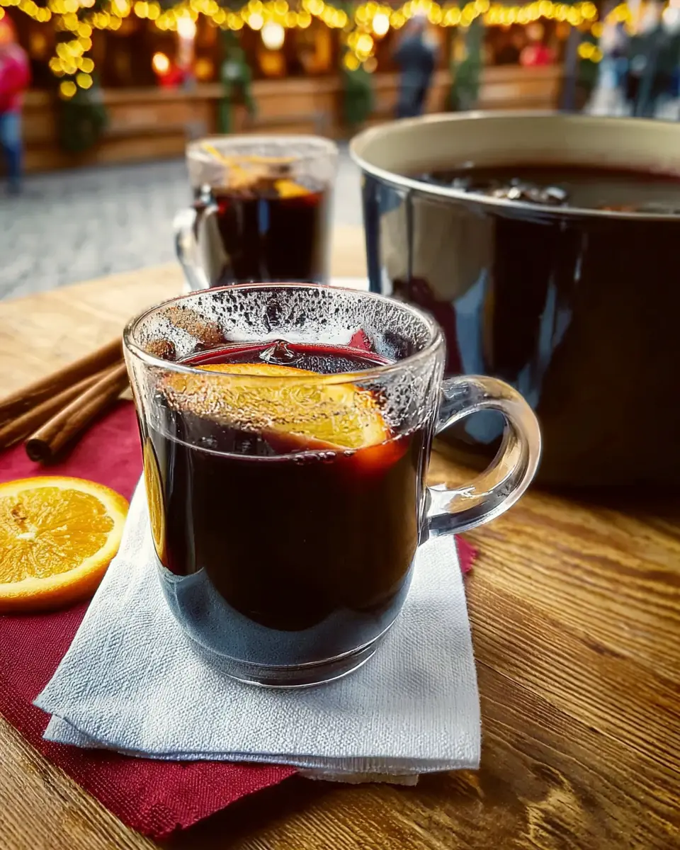 To finish, ladle your warm beverage into mugs and add slices of the reserved orange as a festive garnish. The aroma and taste will transport you to the winter markets of Germany! Serve it warm and watch as everyone savors each sip, glowing with comfort.