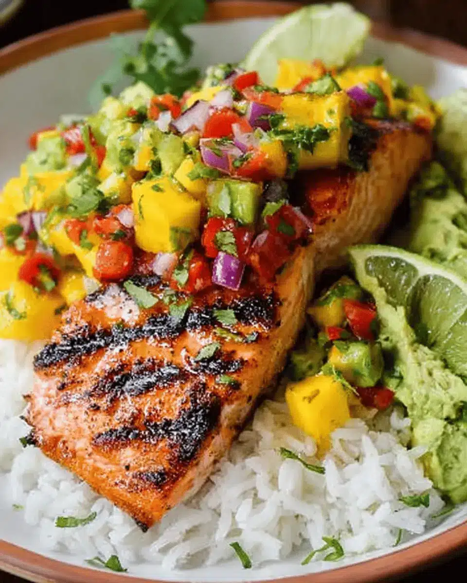 Imagine biting into flaky salmon, freshly grilled to perfection, and topped with a vibrant avocado-mango salsa. The textures and flavors work in harmony, keeping every bite exciting. Pair it with creamy coconut rice, and you have a summer feast right in your kitchen.