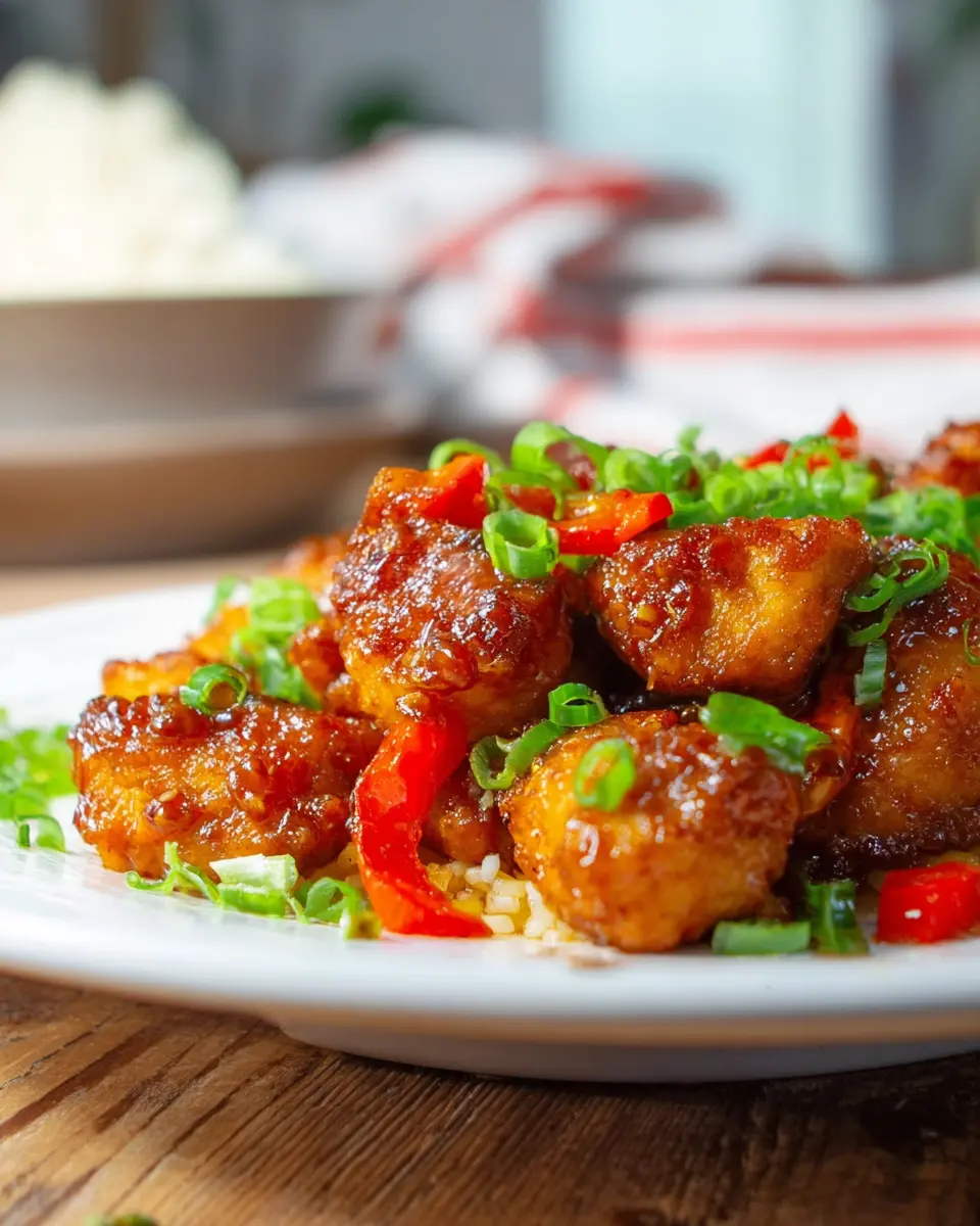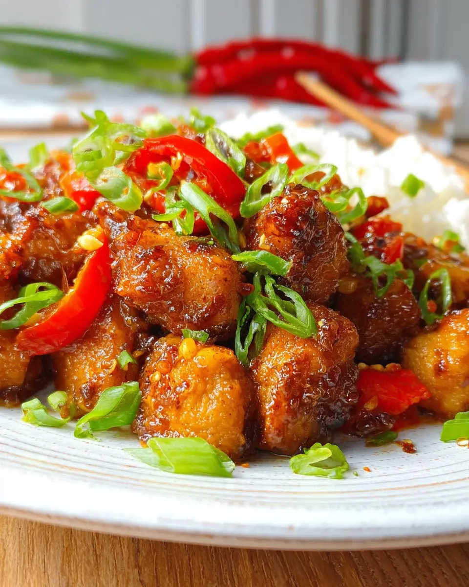 Craving something meatless? Try substituting the chicken with firm tofu for a delightful vegetarian version of hot honey pepper chicken. Press and cube your tofu, then coat it with the same spices and hot honey glaze. Sauté until golden brown and crispy. Garnish with scallions like the original recipe. You’ll be amazed at how satisfying this plant-based alternative can be!