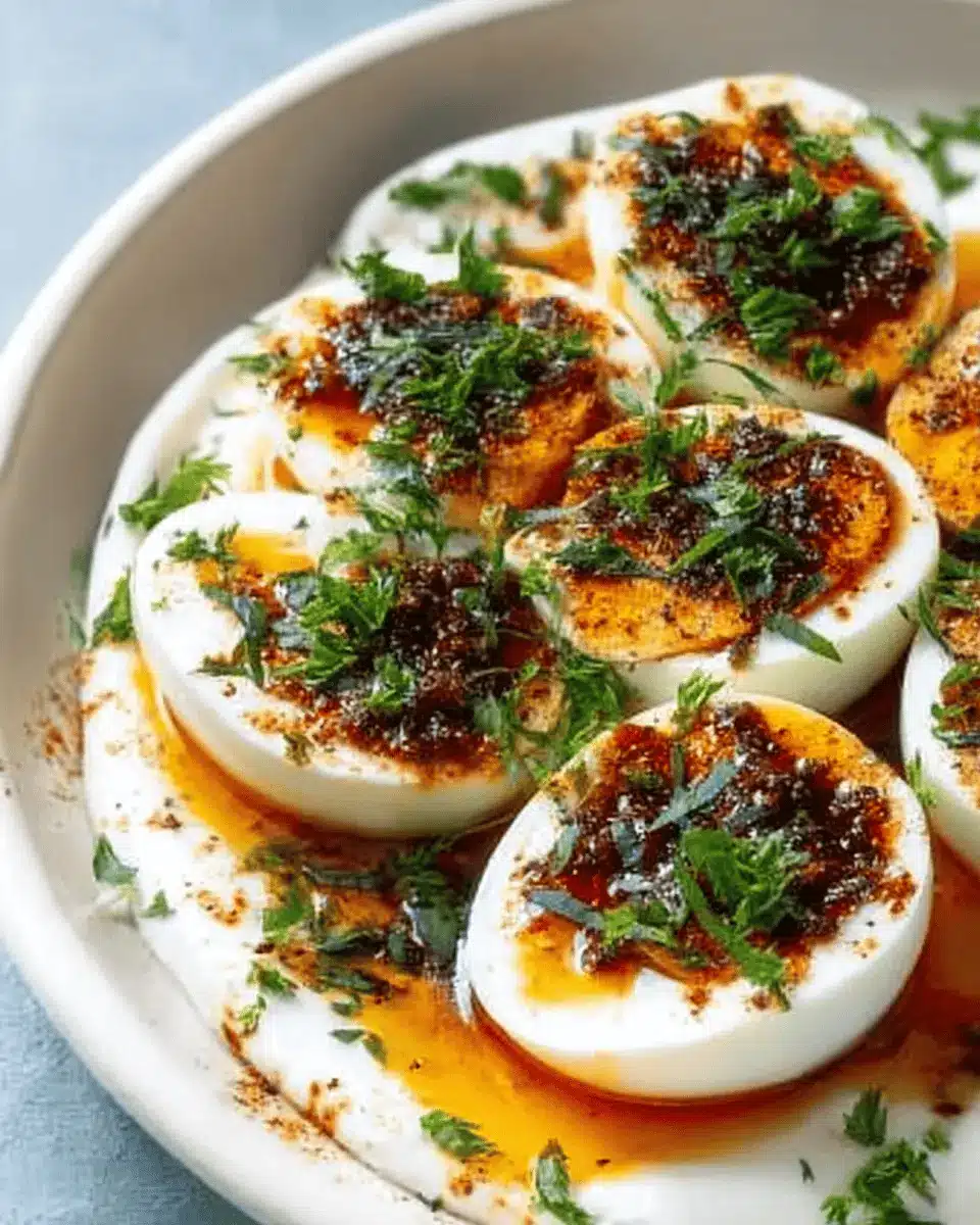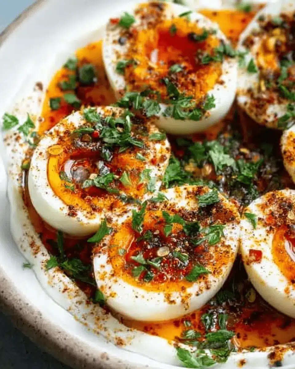 While the original jammy eggs with chili butter and garlic yogurt offer a delightful flavor profile, why not customize yours? Experiment with spices like smoked paprika or ground cumin to layer in warmth and depth. A touch of turmeric can add a golden hue and health benefits too! If you enjoy more heat, consider adding more Aleppo pepper or a splash of hot sauce for a zesty kick.
