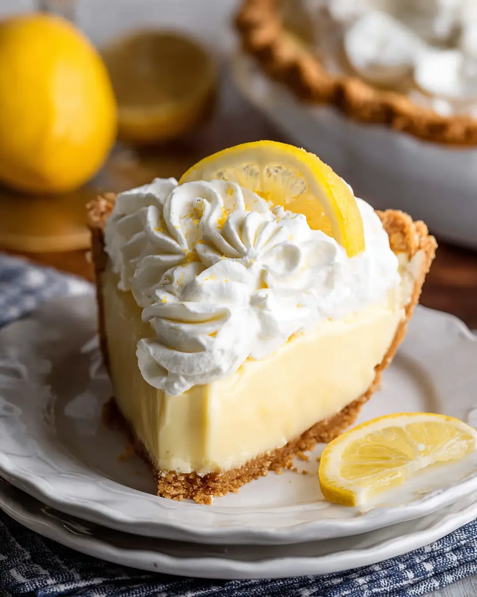 When you’re ready to serve, spread the whipped cream generously over the cooled pie filling, creating a beautiful dome of sweetness. Garnish it with a sprinkle of lemon zest or lemon slices for an extra pop of color and flavor.