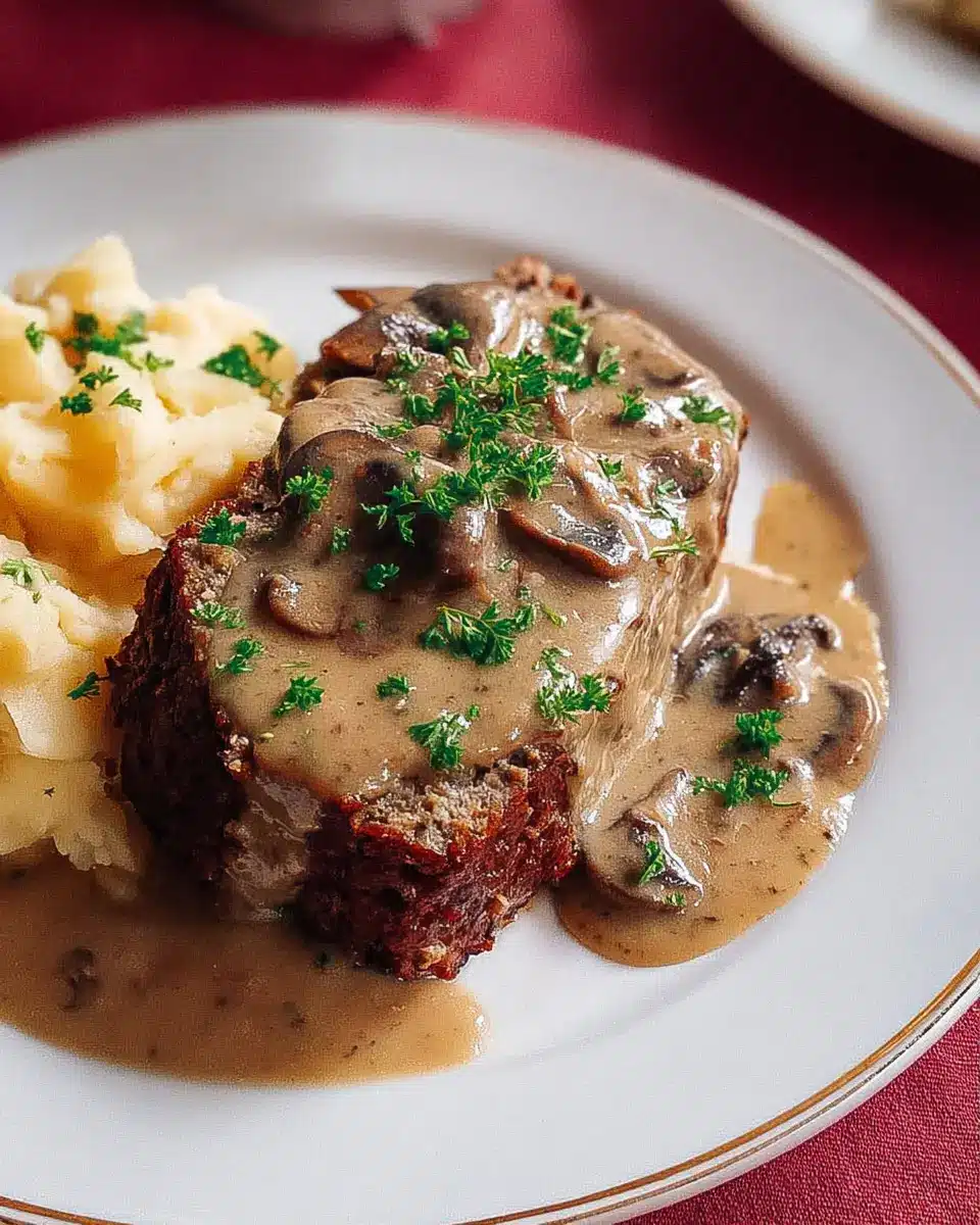 Once your meat loaf is baked to perfection, slice it and drizzle that luscious mushroom gravy over the top. Garnish it with a sprinkle of fresh parsley for that restaurant-worthy presentation. Serve this dish warm, and watch as everyone gathers around the table, eager to dig in—after all, nothing says home like a warm meat loaf with mushroom gravy!