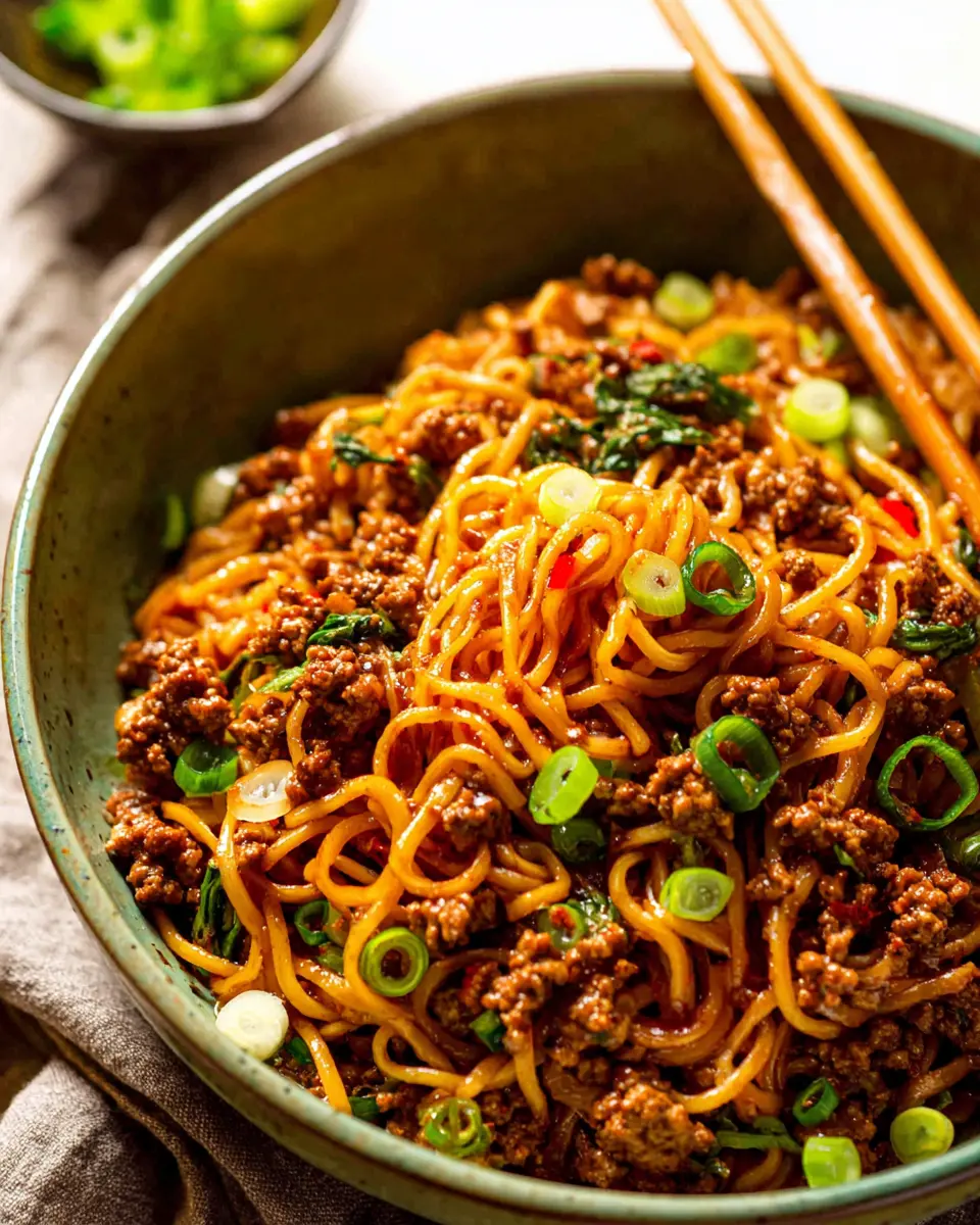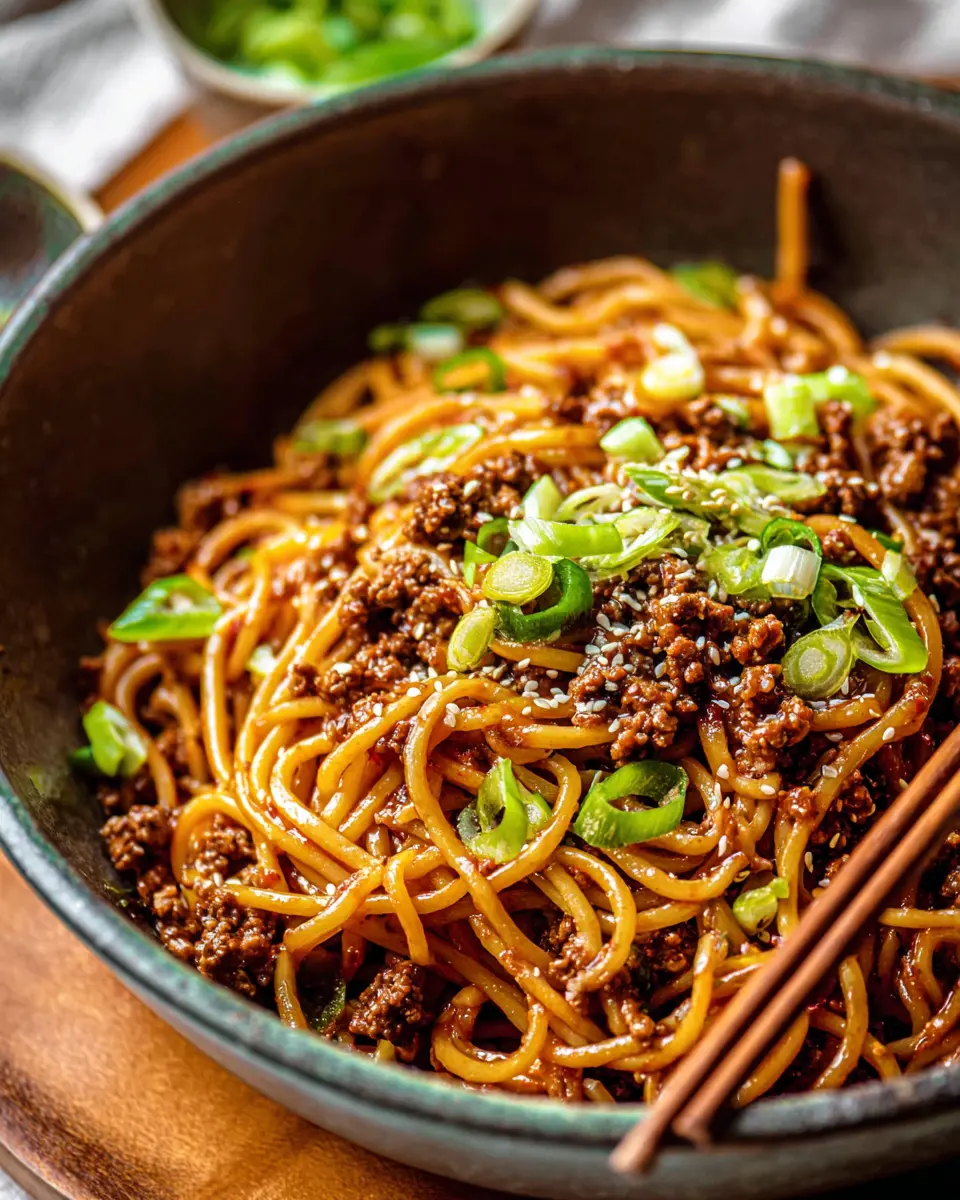 Presentation can elevate your Mongolian Ground Beef Noodles from a weekday meal to a stunning dinner.