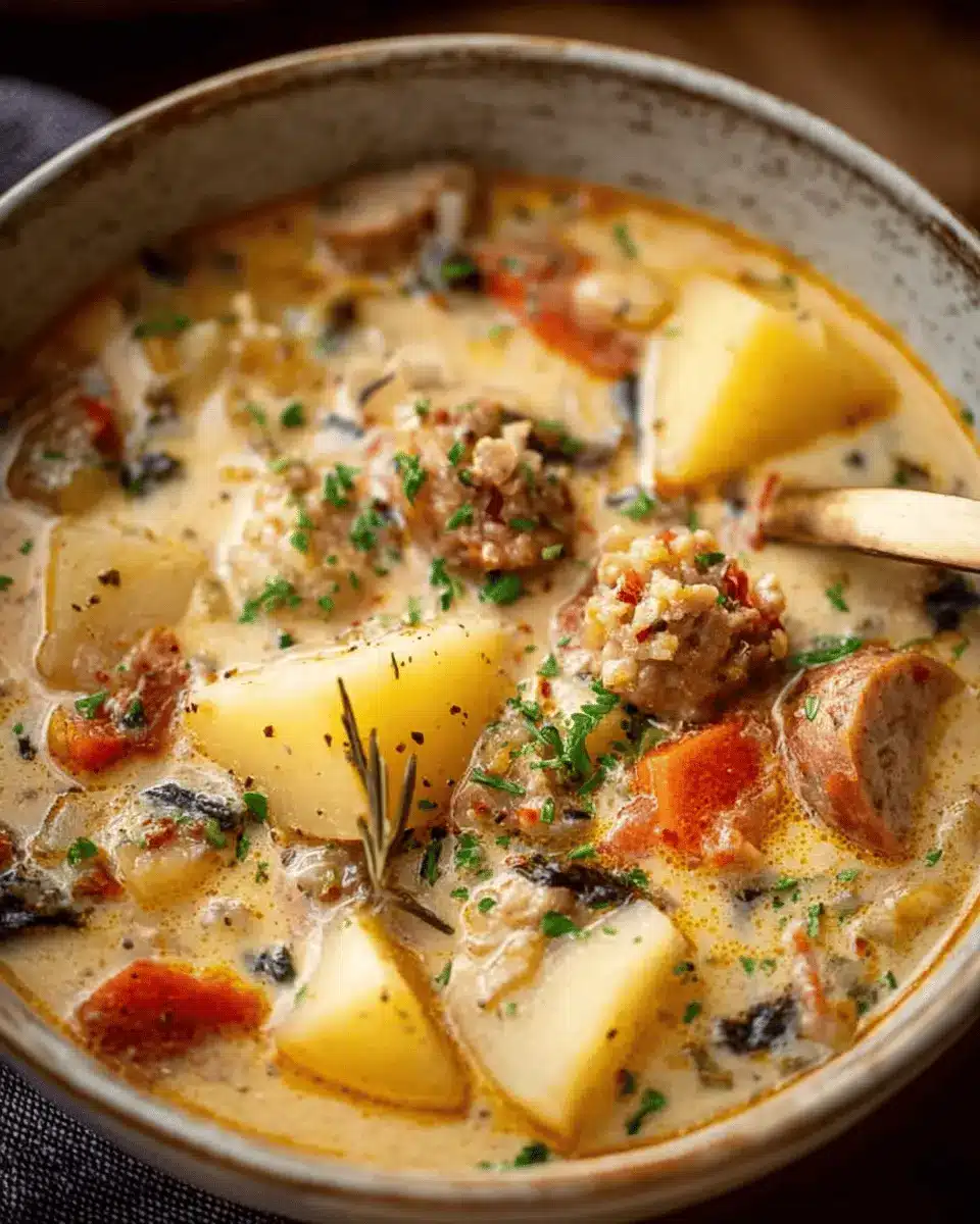 Ah, the beauty of a hearty Potato and Sausage Chowder! This dish is an incredible blend of creamy, comforting flavors that warms you to your core—a perfect remedy for those chilly evenings. Using sausage instead of the more traditional seafood creates a rich, savory base that tantalizes the taste buds.