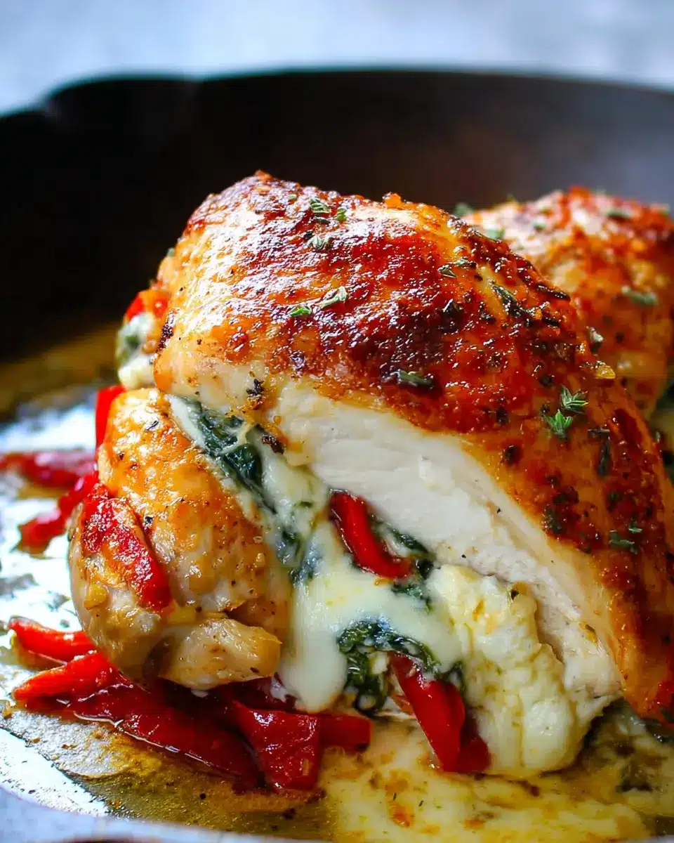 Roasted Red Pepper Spinach Mozzarella Stuffed Chicken