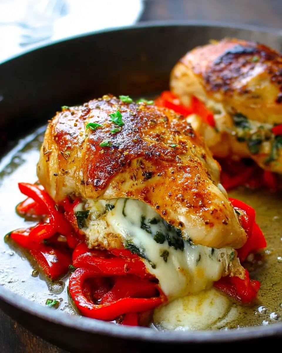 Cooking a delicious meal doesn’t have to be complicated. This Roasted Red Pepper Spinach Mozzarella Stuffed Chicken recipe is not only straightforward but also bursting with flavors. Let’s break down each step to ensure you nail this dish!
