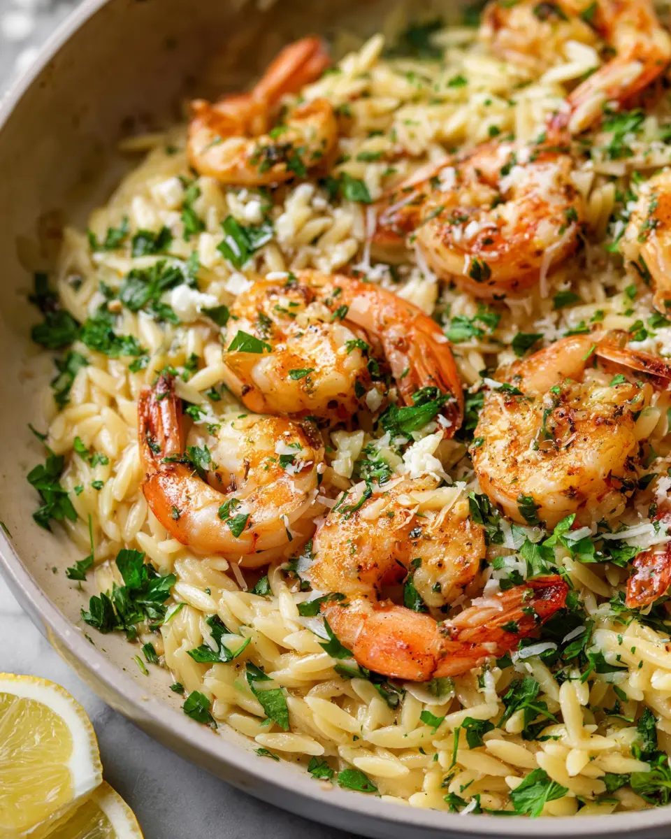 Elevate your shrimp scampi orzo by adding a Mediterranean twist! Incorporate sun-dried tomatoes, Kalamata olives, and feta cheese for a burst of flavor. The tangy olives and creamy feta perfectly complement the rich lemon butter sauce. You can also toss in some baby spinach towards the end for extra nutrients and vibrant color. This variation not only boosts the dish's nutritional profile but also enhances its visual appeal—perfect for impressing guests!
