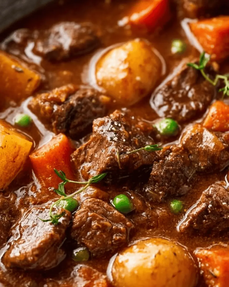 Set your slow cooker to cook on low for 7 ½ to 8 hours or on high for 3 ½ to 4 hours. As it cooks, your home will fill with mouth-watering aromas that will make it hard to resist! In the last 15 minutes, add 1 cup of frozen peas to give your stew some color and freshness. If you'd like a thicker stew, make a cornstarch slurry by mixing ¼ cup of cold water with 3 tablespoons of cornstarch and add it in before serving. Lastly, finish it off by swirling in another 2 tablespoons of cold butter for that restaurant-worthy richness.