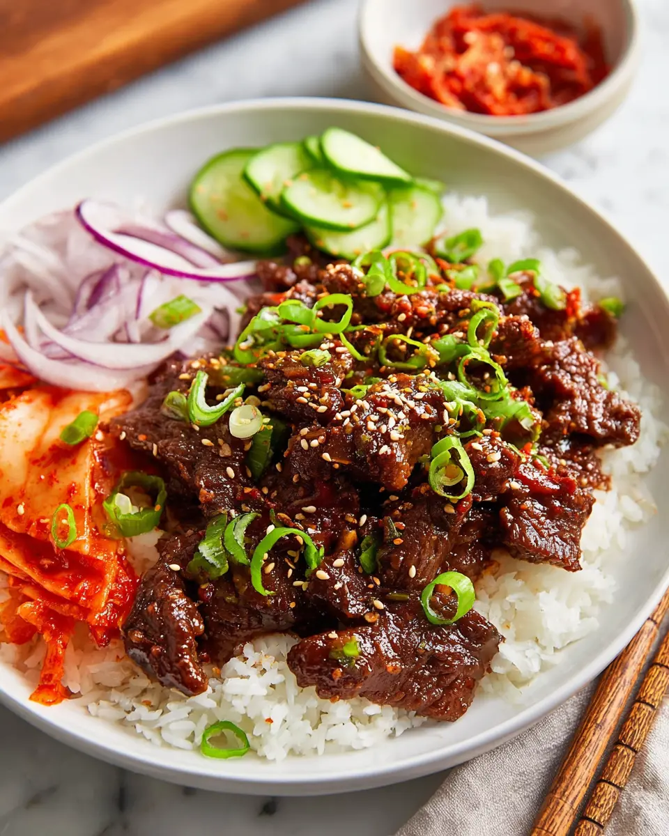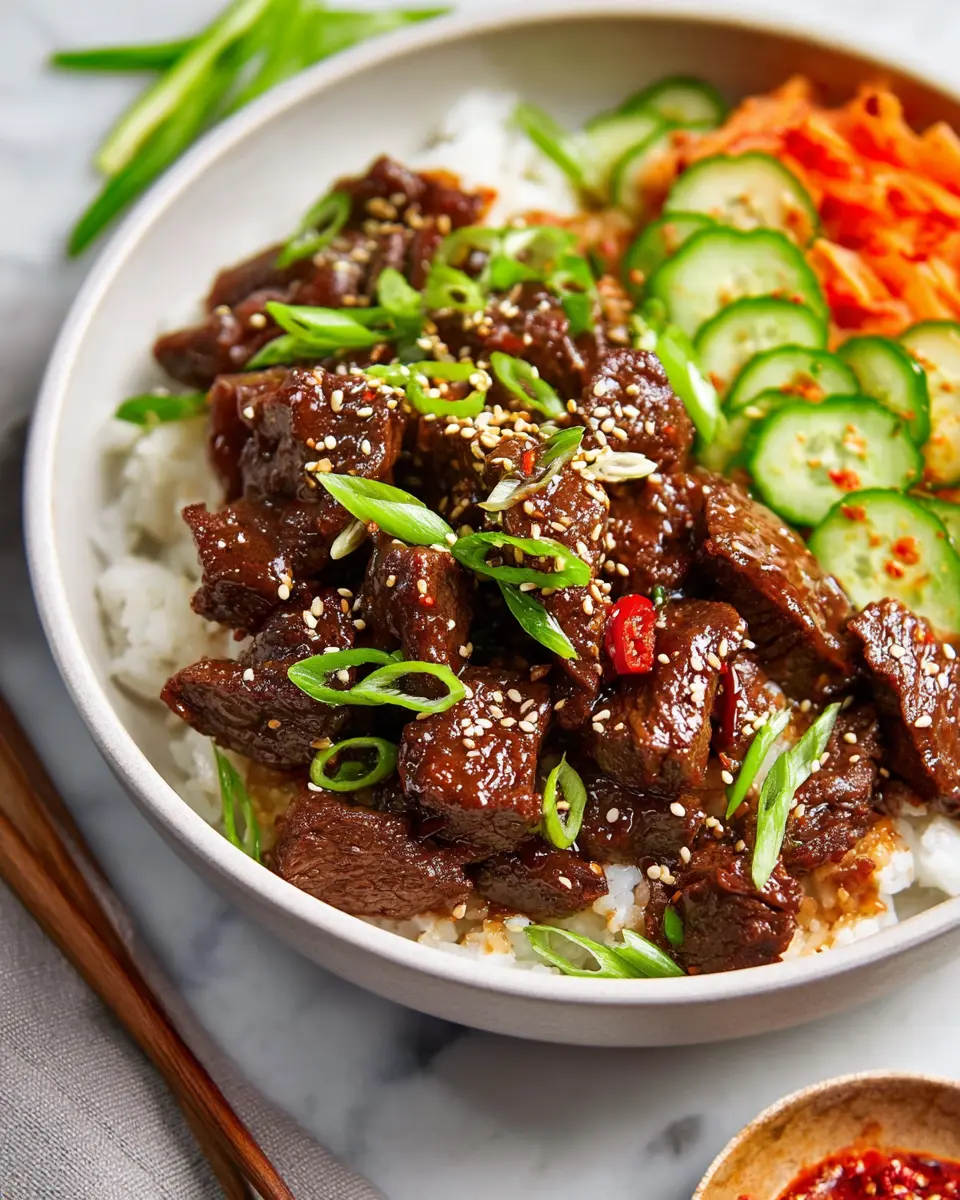Transform your slow cooker Korean beef into a delicious bowl meal by serving it over a bed of fluffy rice or quinoa. Add steamed veggies like bok choy or broccoli for a colorful and nutritious twist. Garnish with sliced green onions and sesame seeds for added crunch. This method makes for a quick lunch or an easy weeknight dinner that’s both satisfying and wholesome!