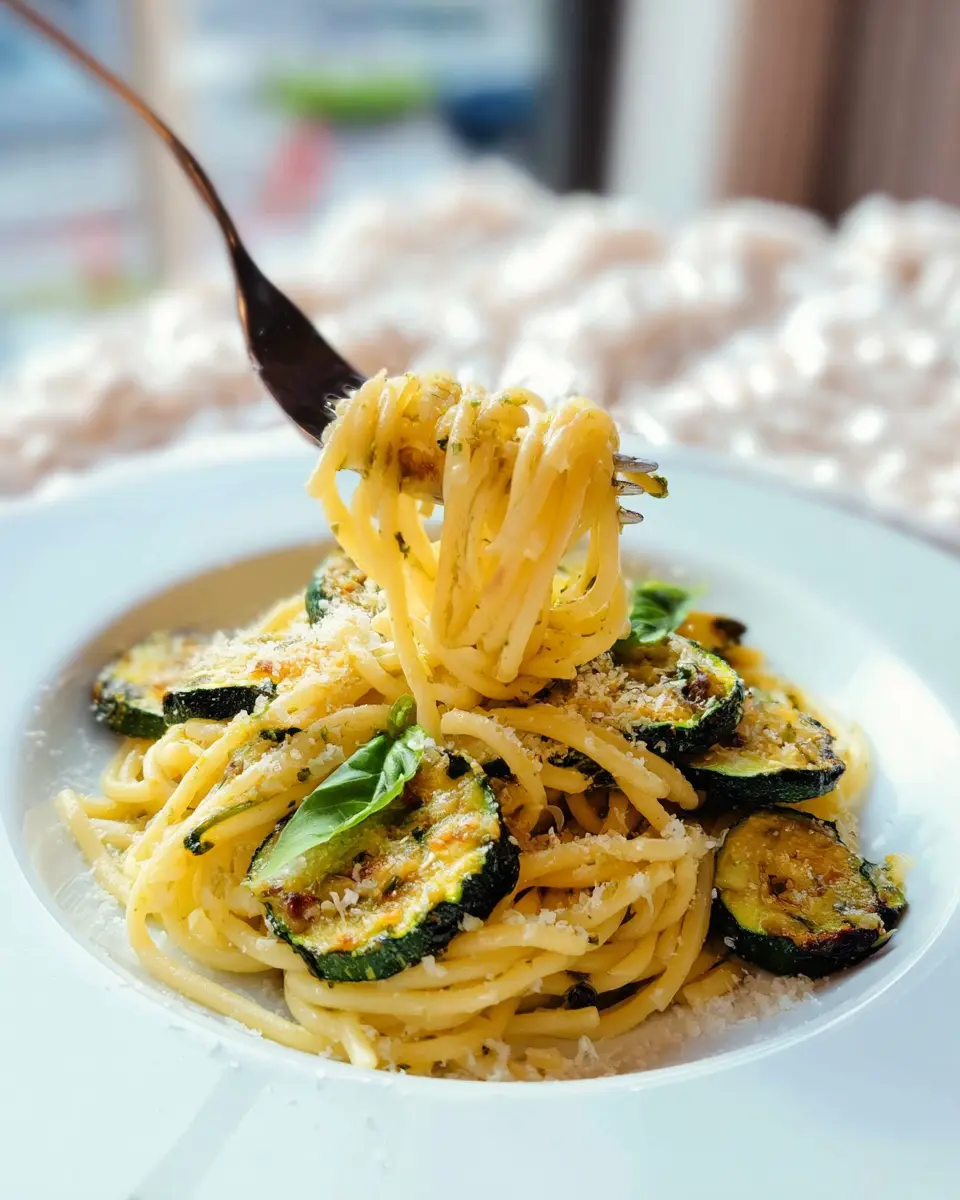 Spaghetti alla Nerano (pasta with fried zucchini)