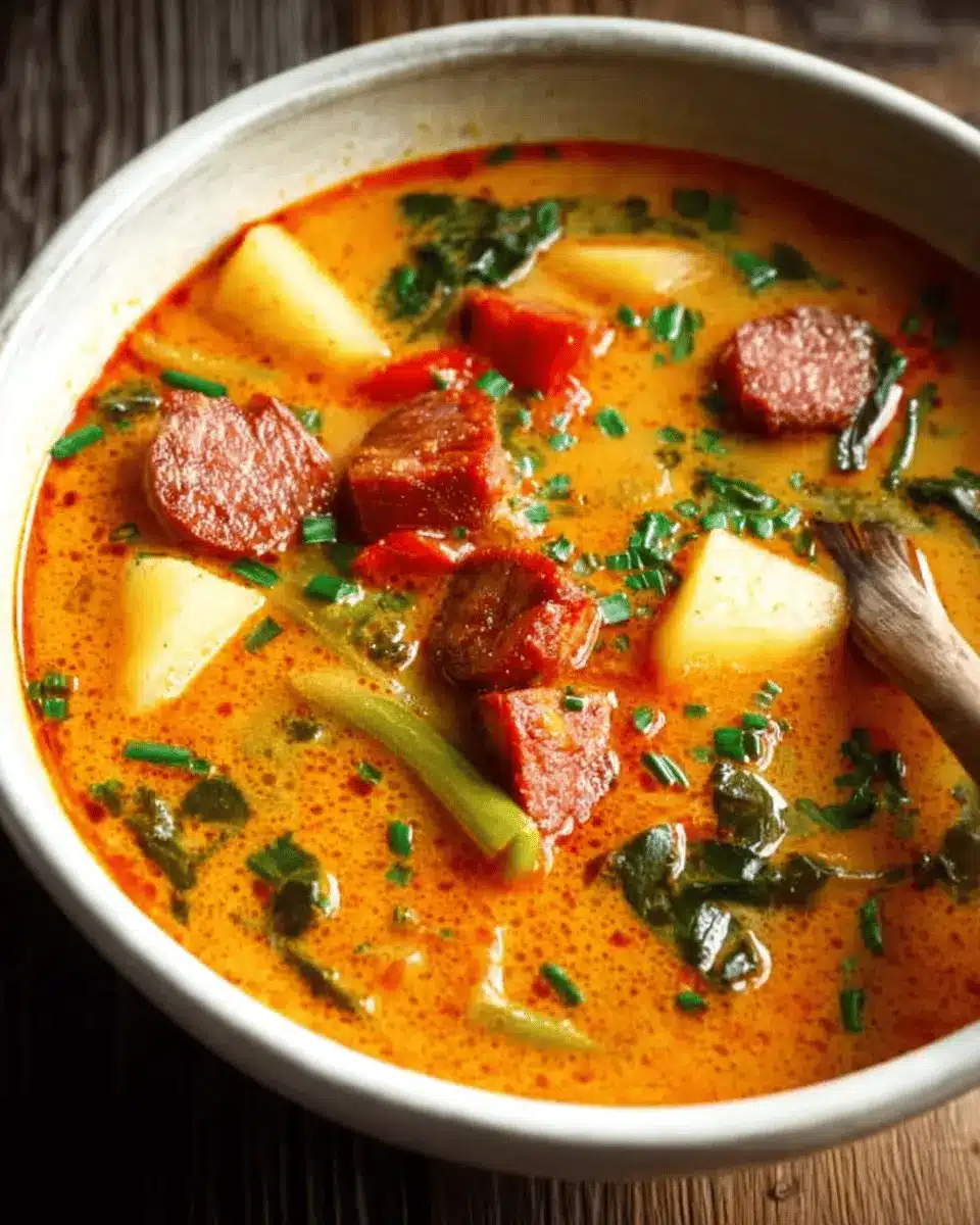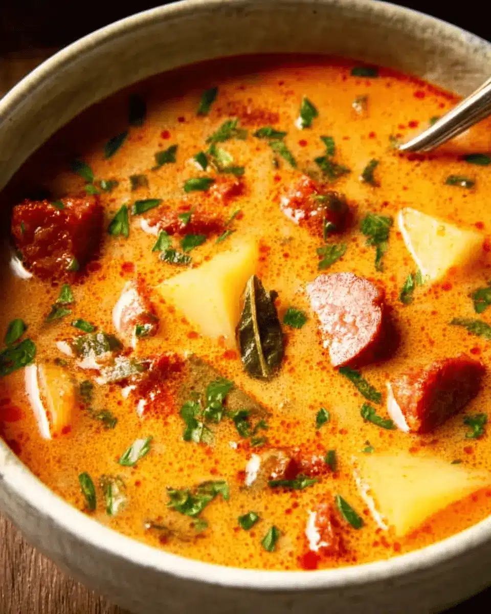 In summary, the Spanish Potato Soup with Chorizo is a comforting dish that combines creamy potatoes and smoky chorizo, making it an instant favorite for chilly evenings. It’s easy to prepare and packed with flavor—perfect for sharing with friends and family or enjoying solo with a slice of crusty bread.