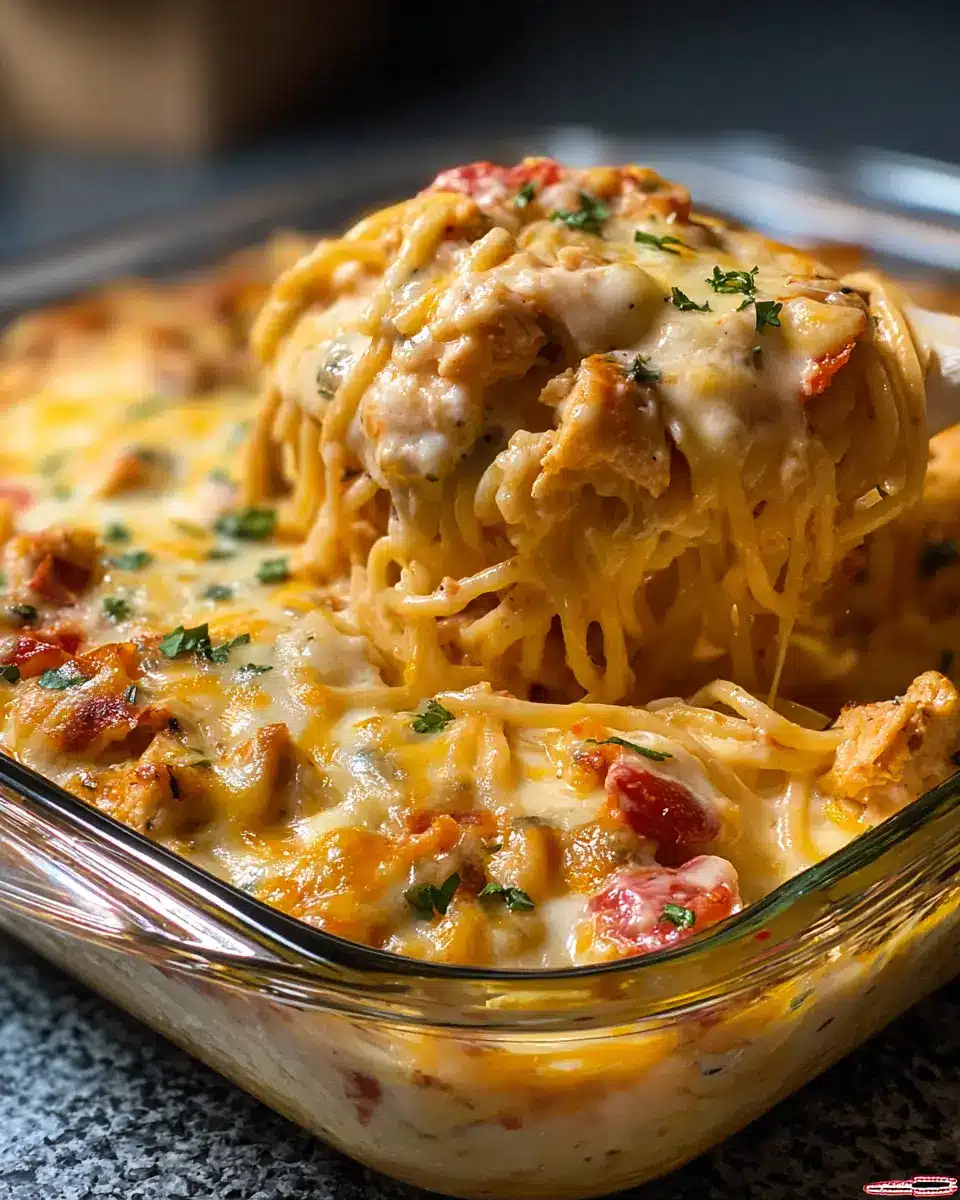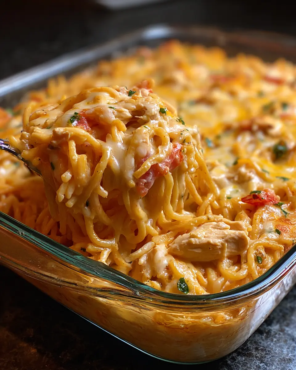 SPICY SOUTHERN CHEESY CHICKEN SPAGHETTI CASSEROLE