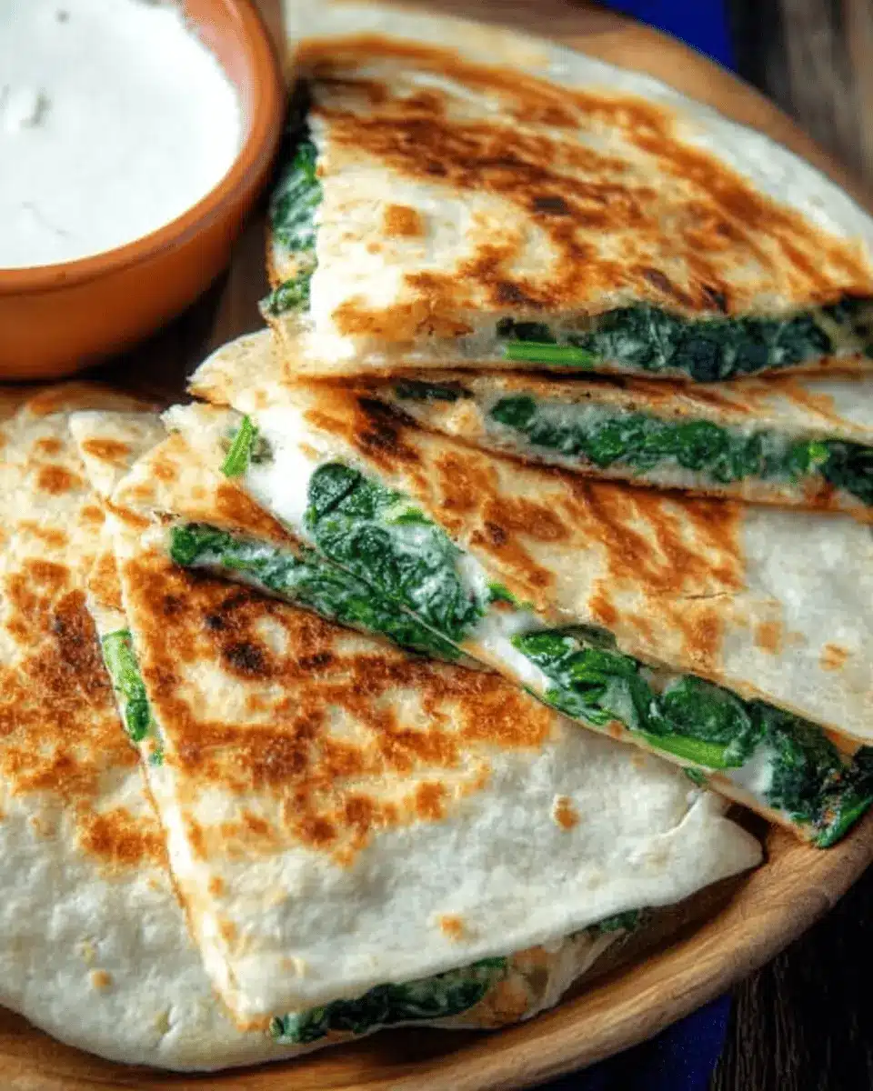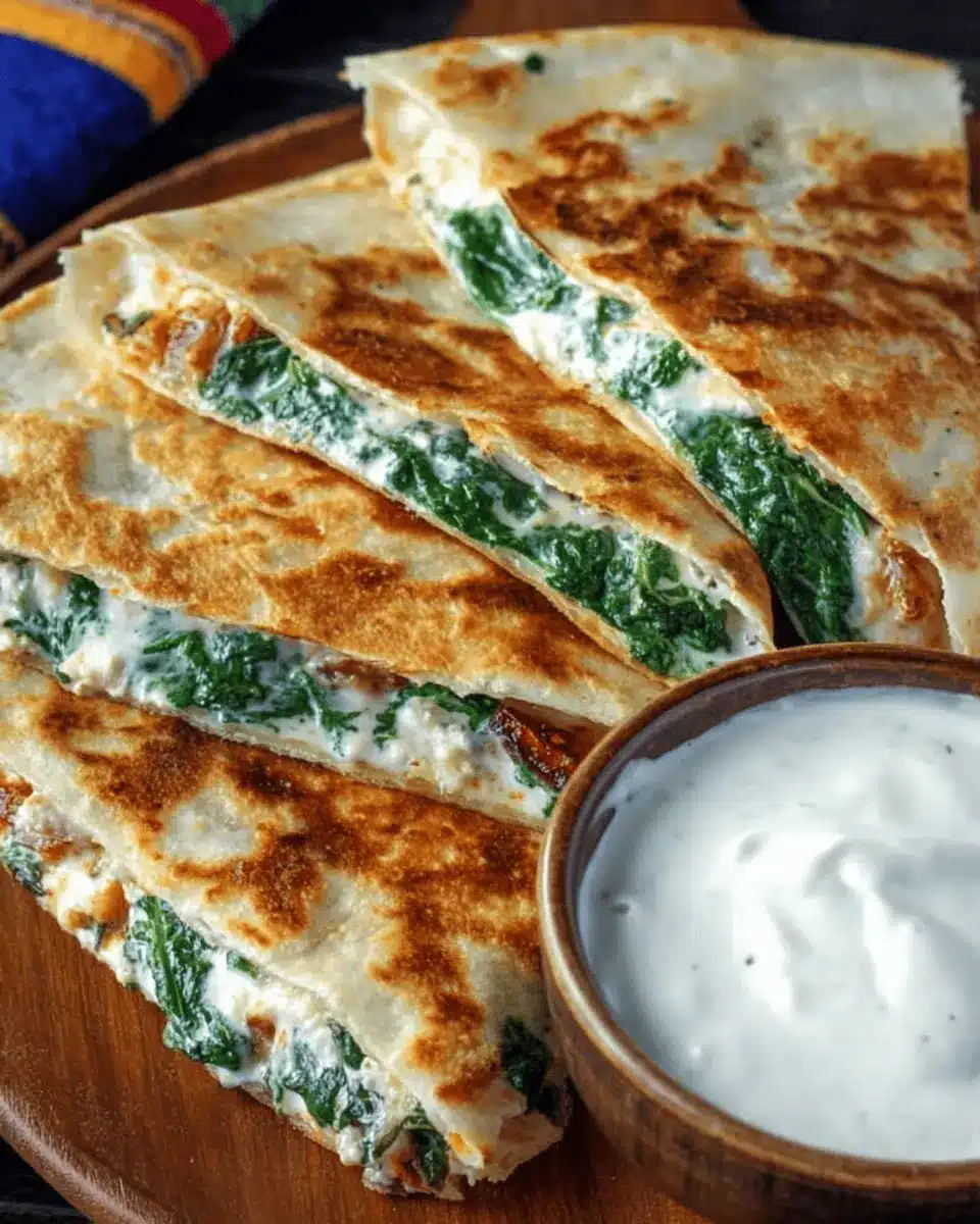 Pair your Spinach Feta Quesadilla with vibrant sides like a fresh green salad or some crunchy veggie sticks for a refreshing contrast. A simple guacamole or a zesty salsa can also elevate the meal, adding a burst of flavor that complements the creamy feta and spinach. If you want to take it up a notch, try serving it with homemade pico de gallo for an added kick.