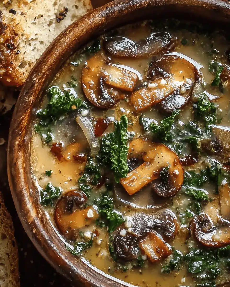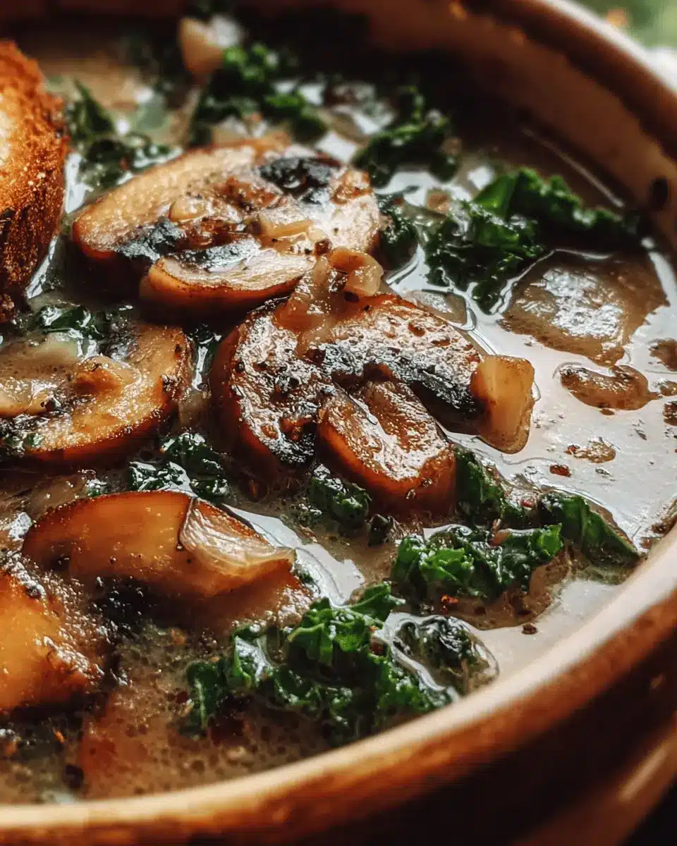 Moreover, the aroma of onions slowly caramelizing and earthy mushrooms mingling on the stove is simply irresistible. It creates a kitchen atmosphere that invites warmth and togetherness—perfect for a gathering with friends or a relaxing night in. Plus, preparing this wild mushroom caramelized onion kale soup is straightforward! You’ll see how quick it is to create a nourishing dish that’s ideal for any meal, whether you’re looking for a hearty lunch or a delightful dinner side.