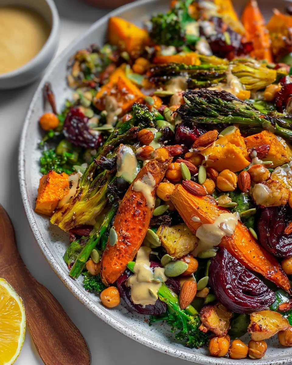 Winter Roasted Vegetable Salad with Lemon Tahini Dressing